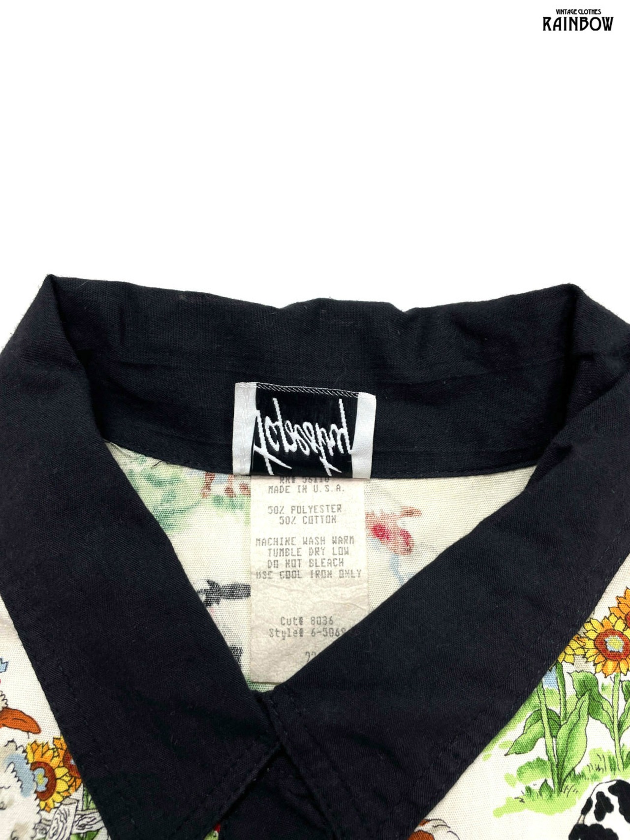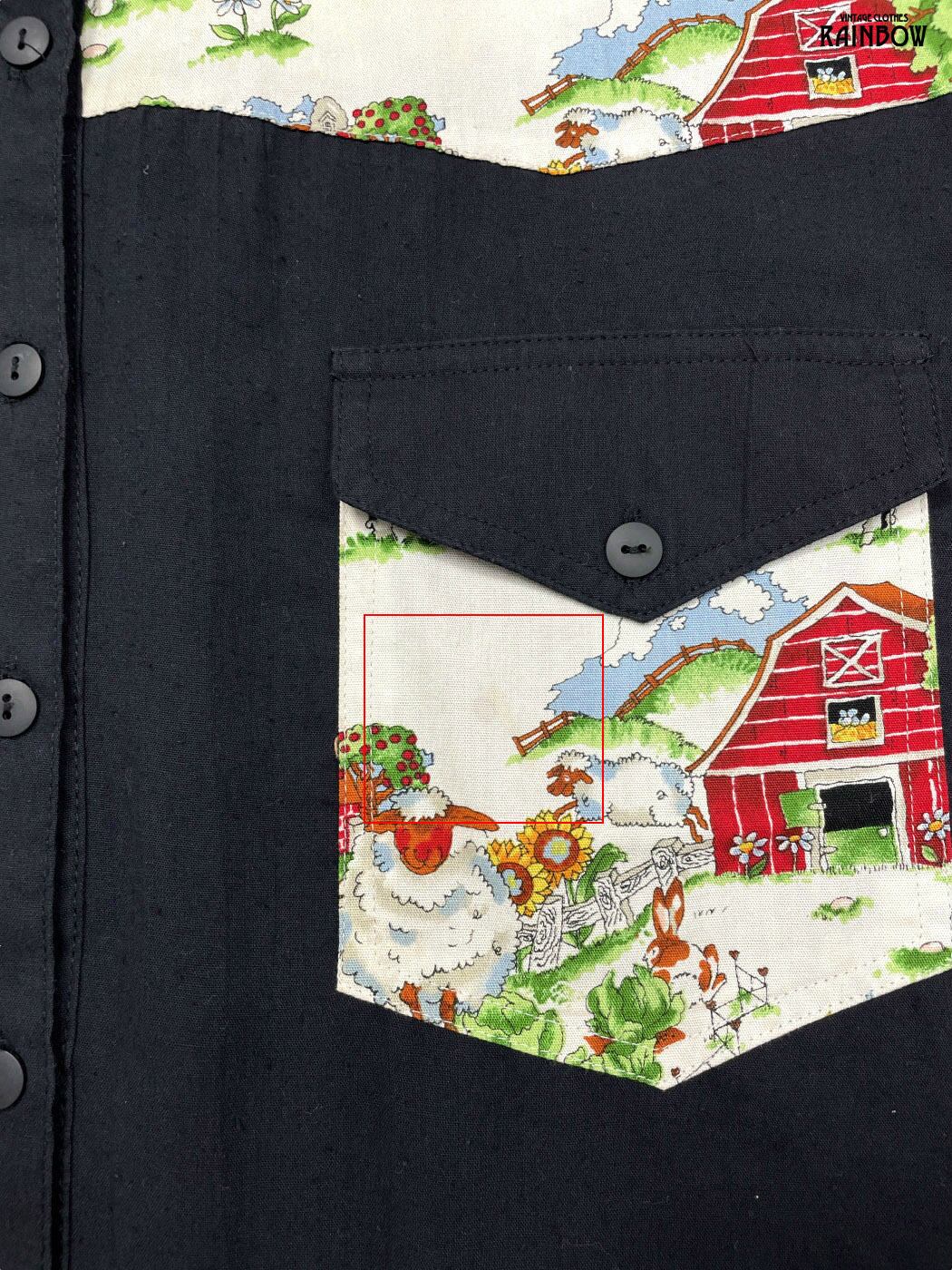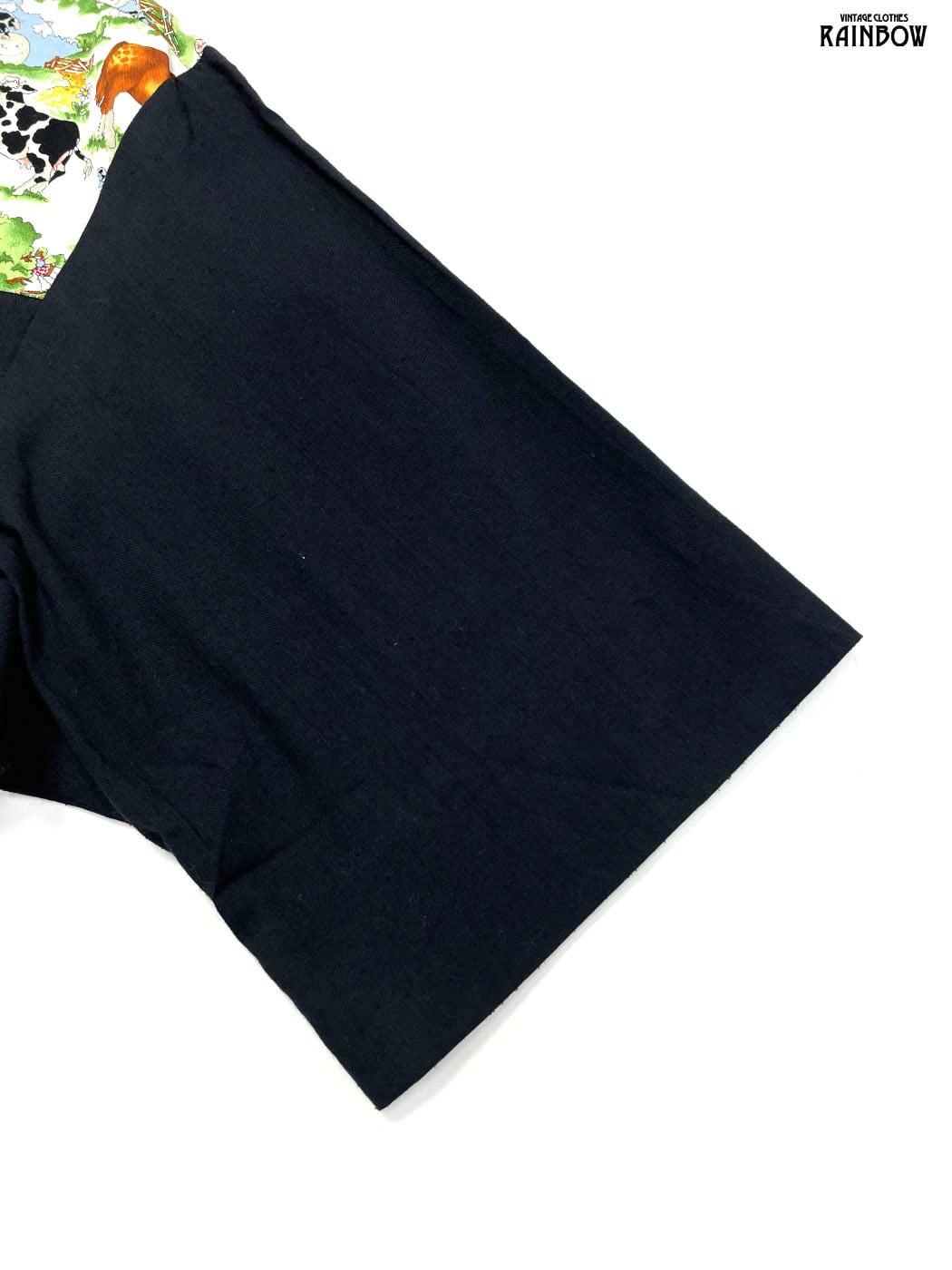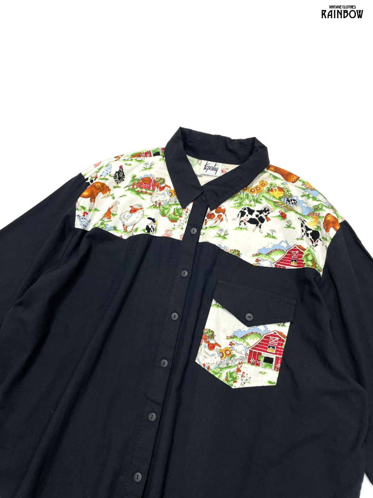 #ブラウス #シャツ #ハーフスリーブ #黒 #総柄 #牧場 #アメリカ製 #コットン #半袖柄シャツ