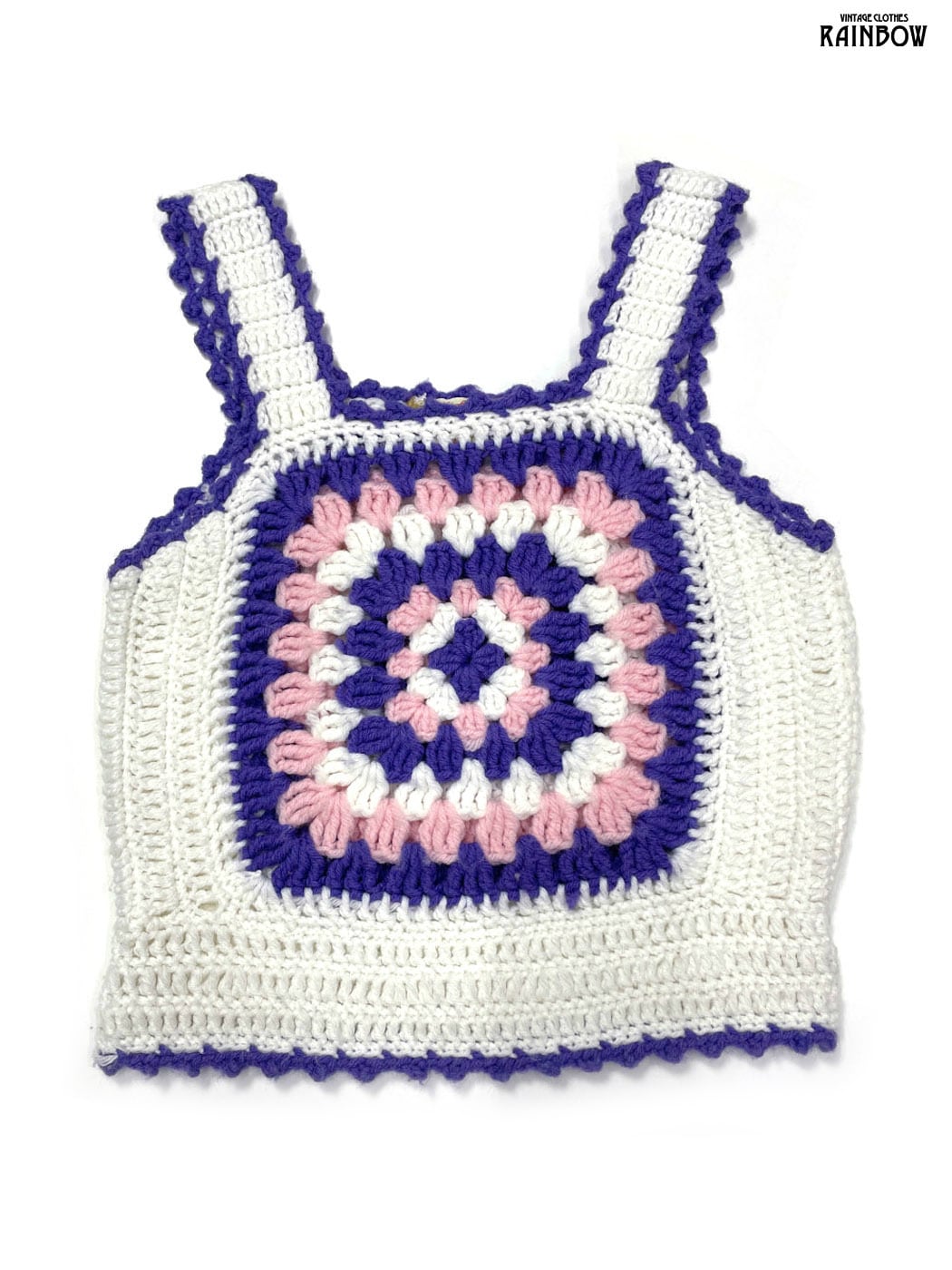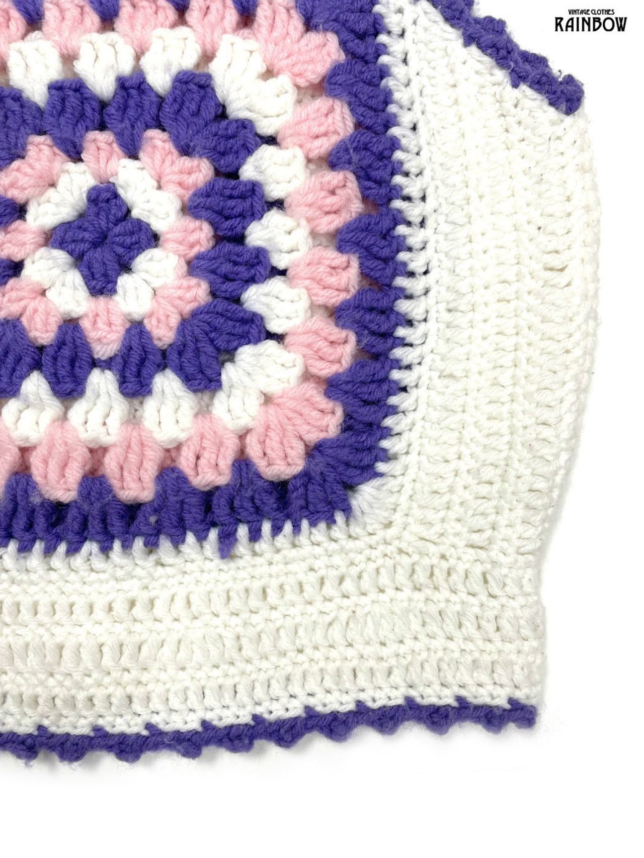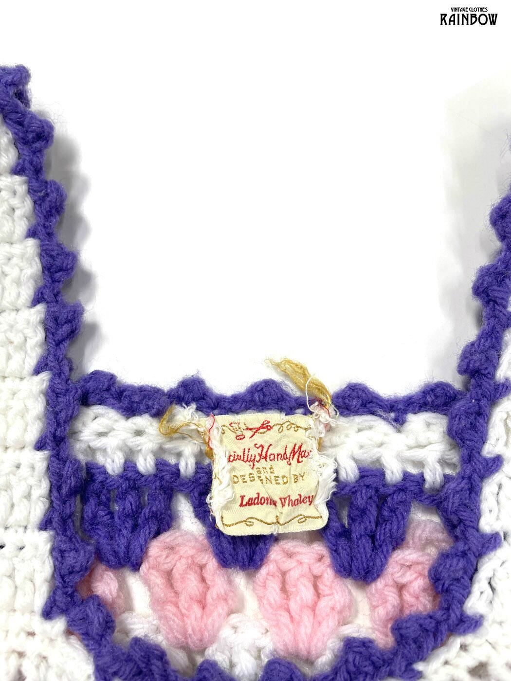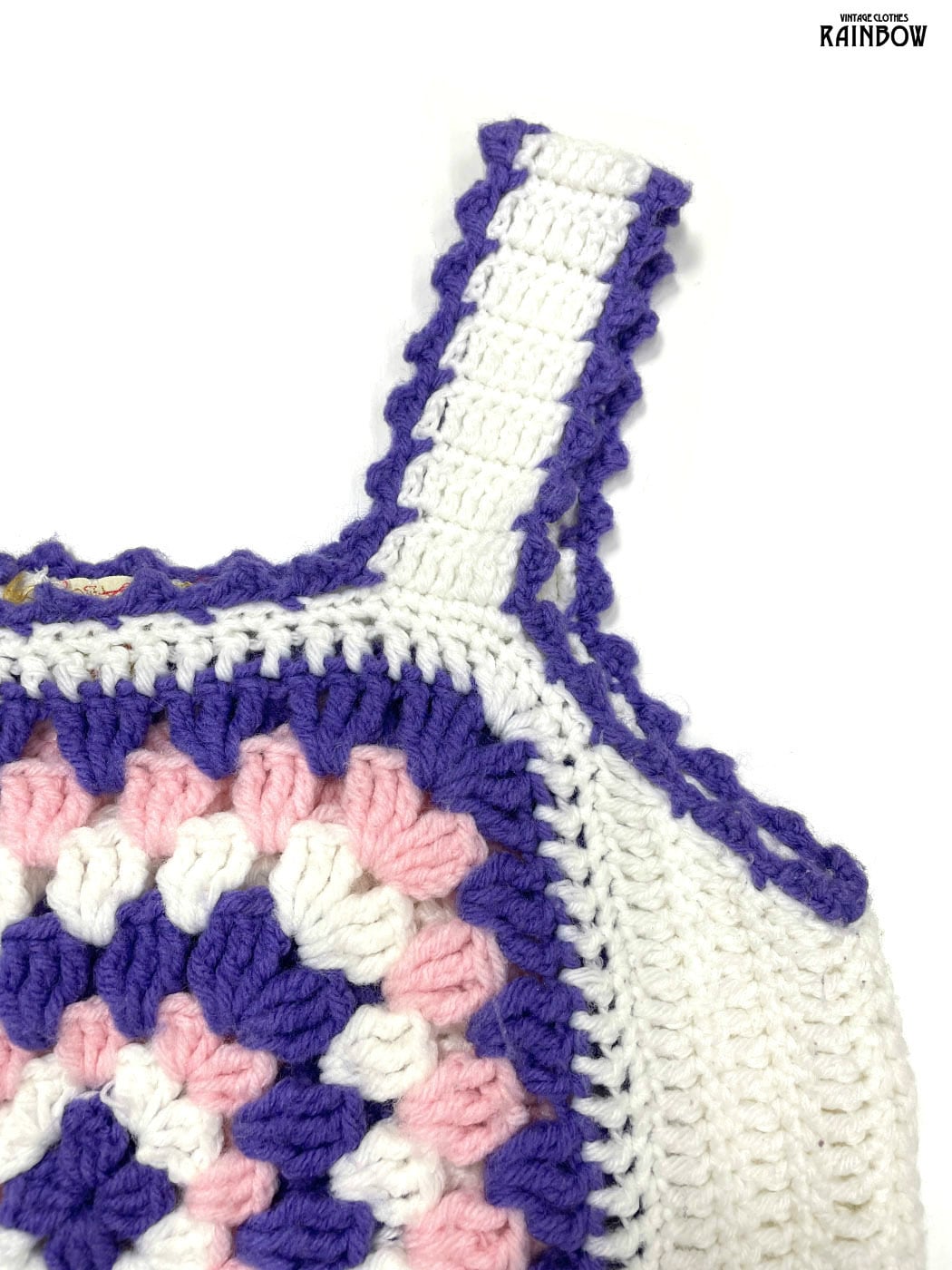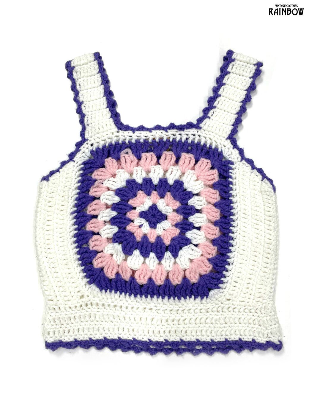 #トップス #ベスト #ノースリーブ #白 #紫 #総柄 #ニット地 #ベスト