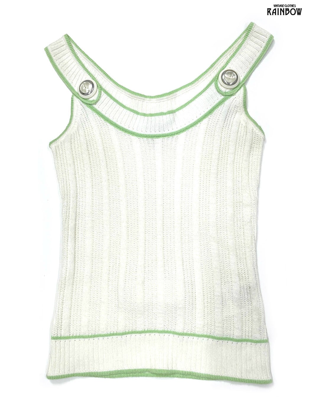#トップス #ベスト #ノースリーブ #白 #無地 #ニット地 #ベスト