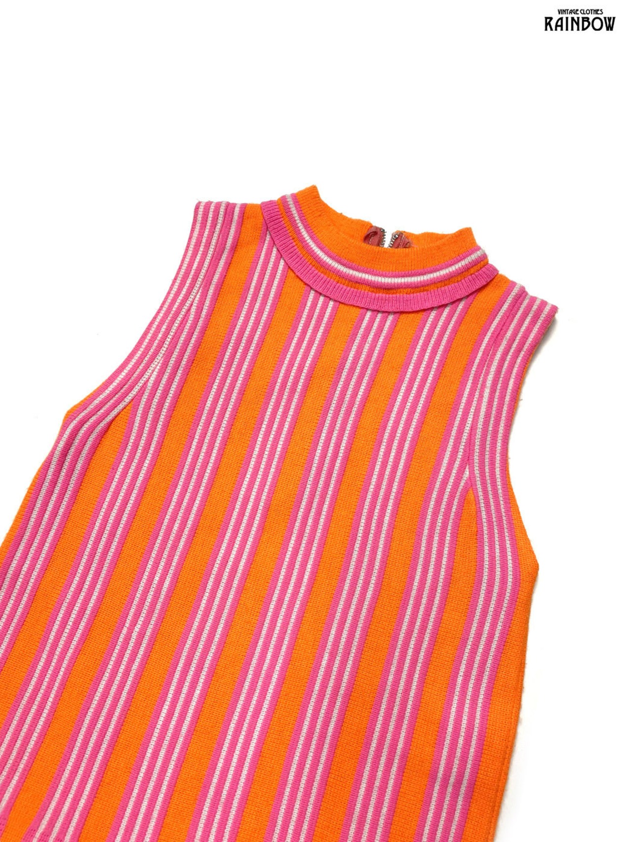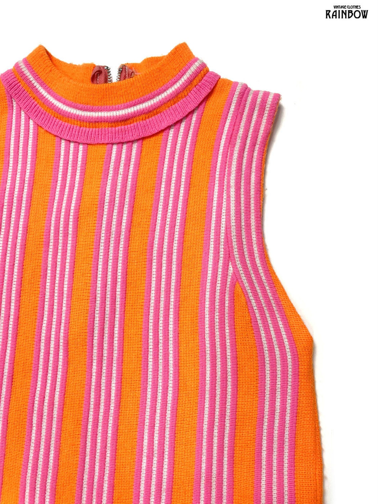 #ニット #ノースリーブ #オレンジ #ストライプ柄 #ニット地 #ノースリーブニット