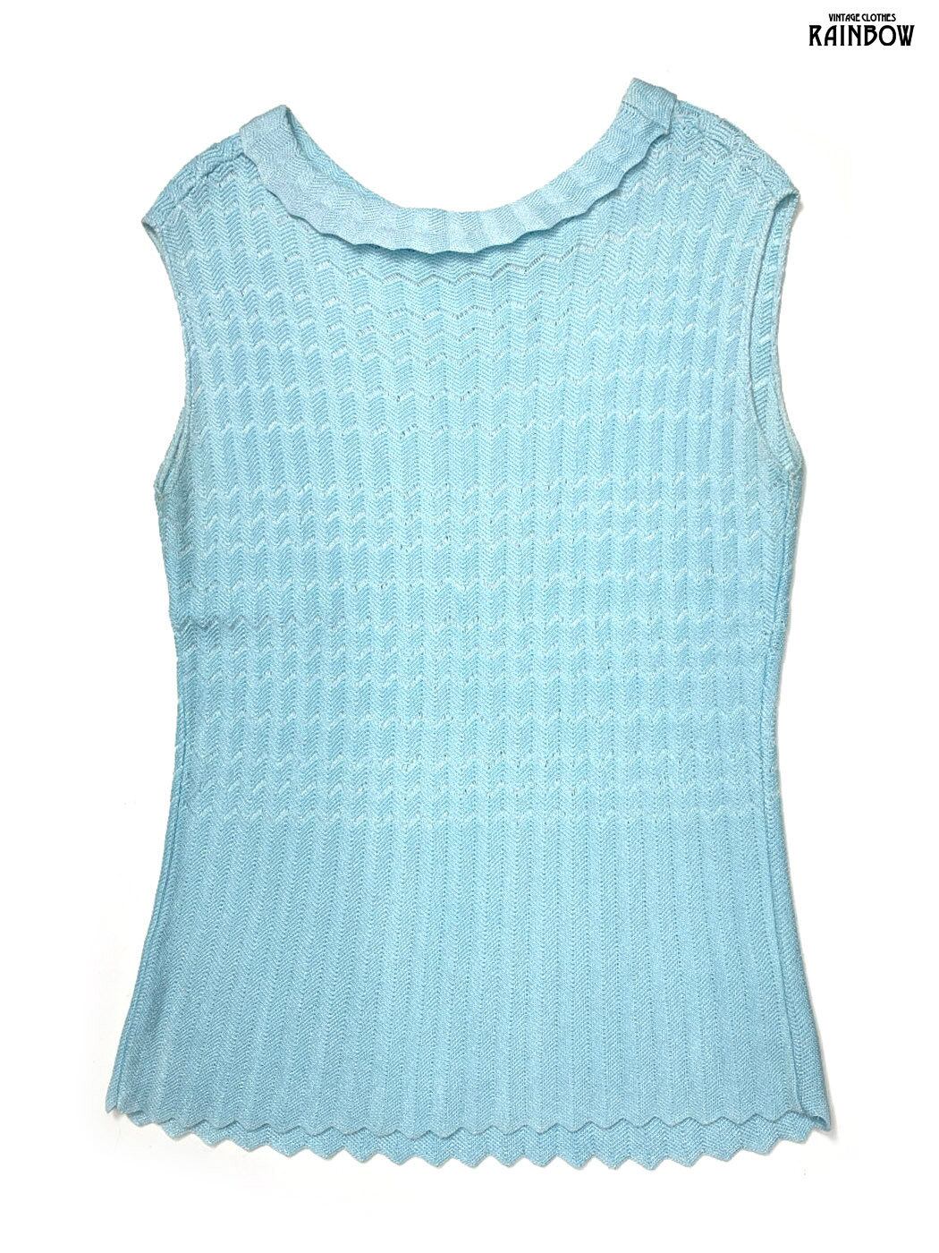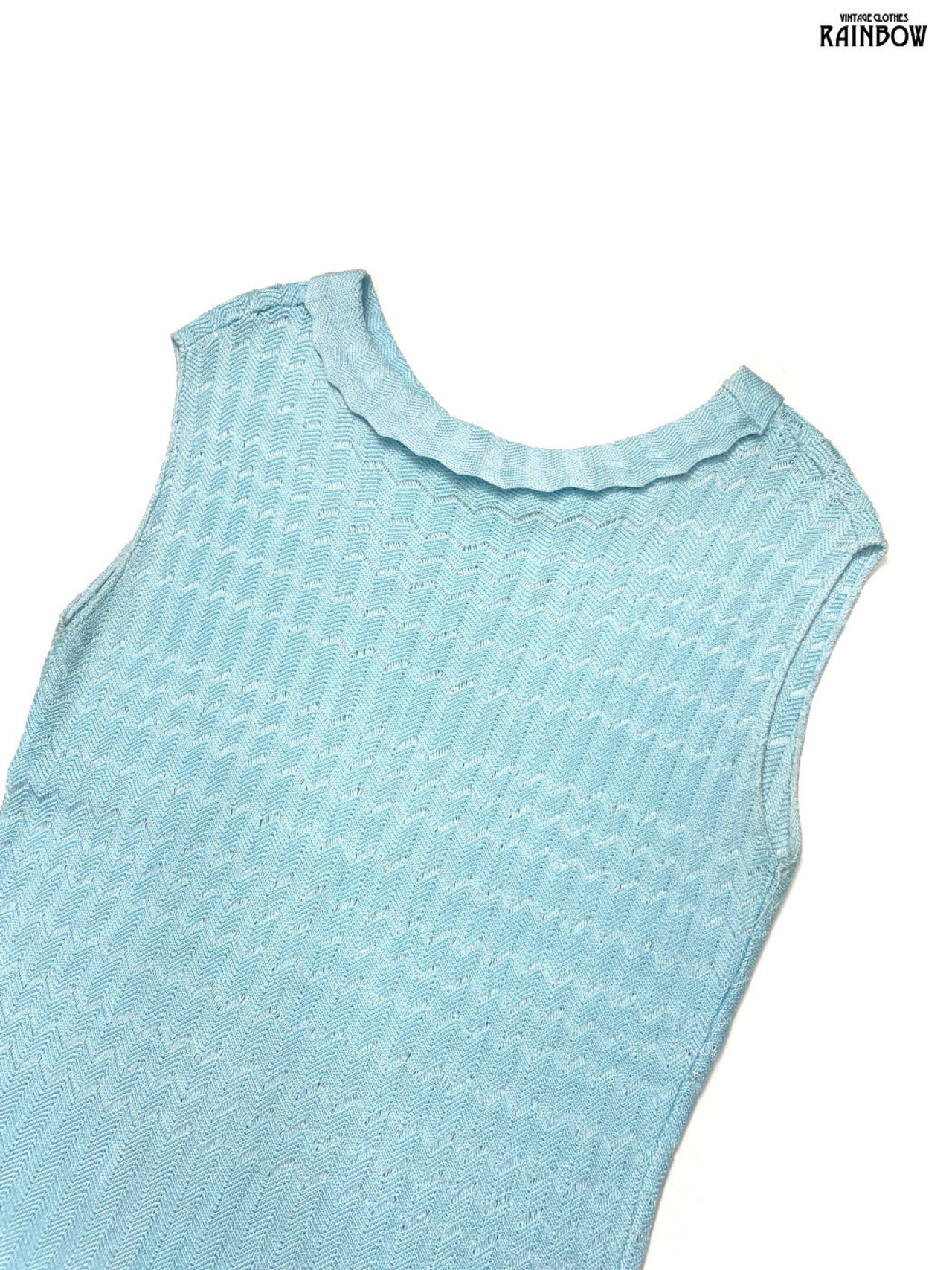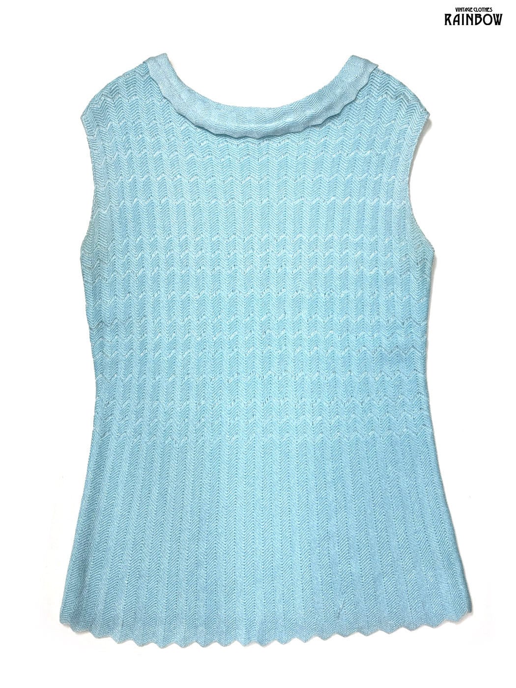 #ニット #ノースリーブ #水色 #無地 #シンプル #ニット地 #ノースリーブニット