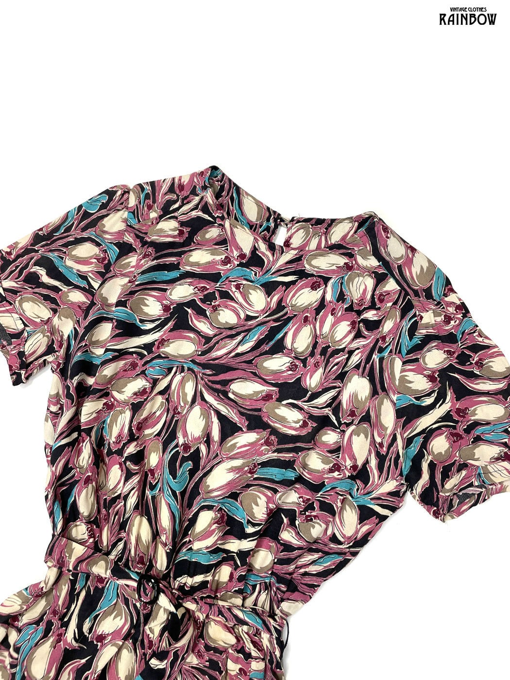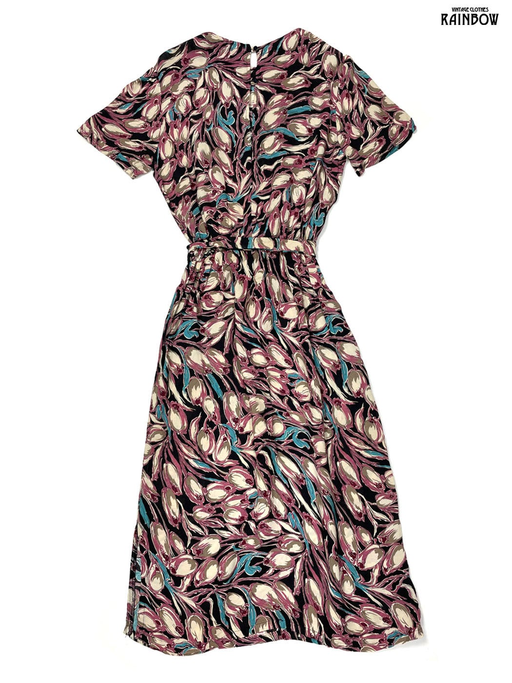 #ワンピース #ハーフスリーブ #ロング丈 #ゴムウエスト #黒 #ピンク #花柄 #ベルト付き #クラシック #半袖花柄ワンピース