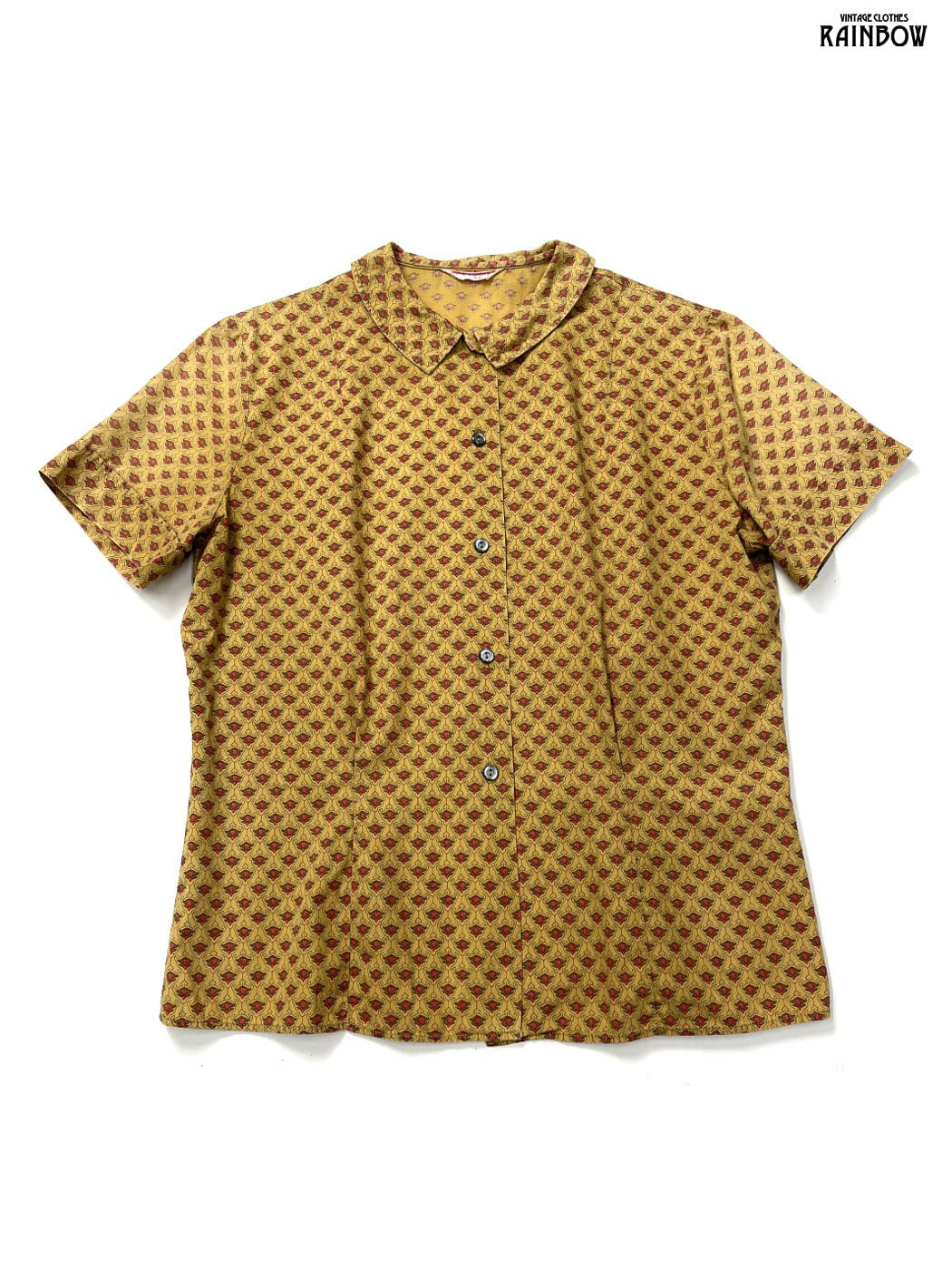 #ブラウス #シャツ #ハーフスリーブ #黄 #マスタード #総柄 #コットン #半袖柄シャツ
