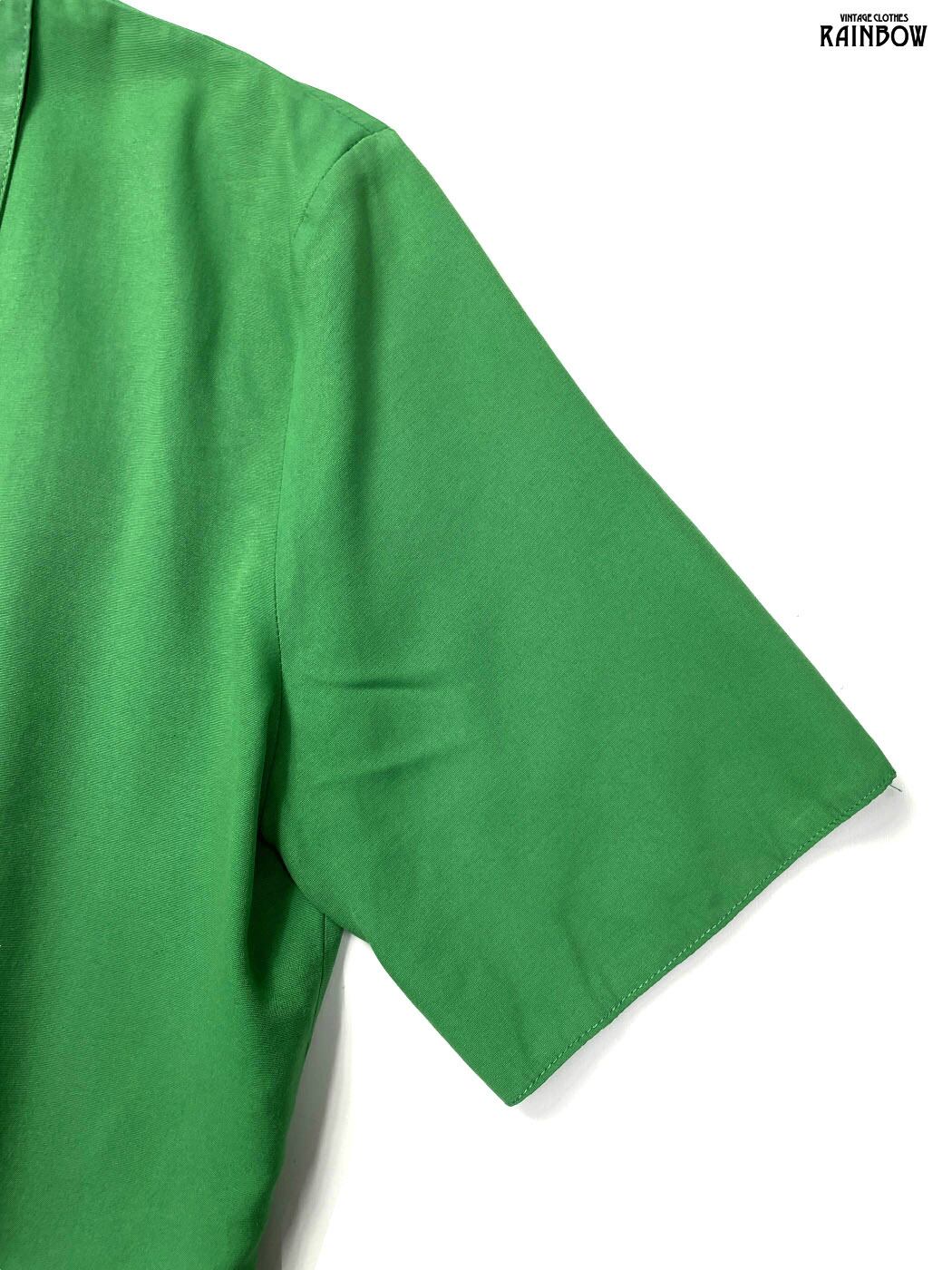 #ブラウス #シャツ #ハーフスリーブ #緑 #無地 #イギリス製 #シンプル #レーヨン #半袖無地シャツ