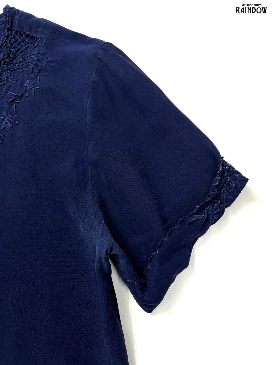 #ブラウス #bブラウス #ハーフスリーブ #紺 #無地 #刺繍 #ヴィンテージ #シルク #半袖刺繍ブラウス