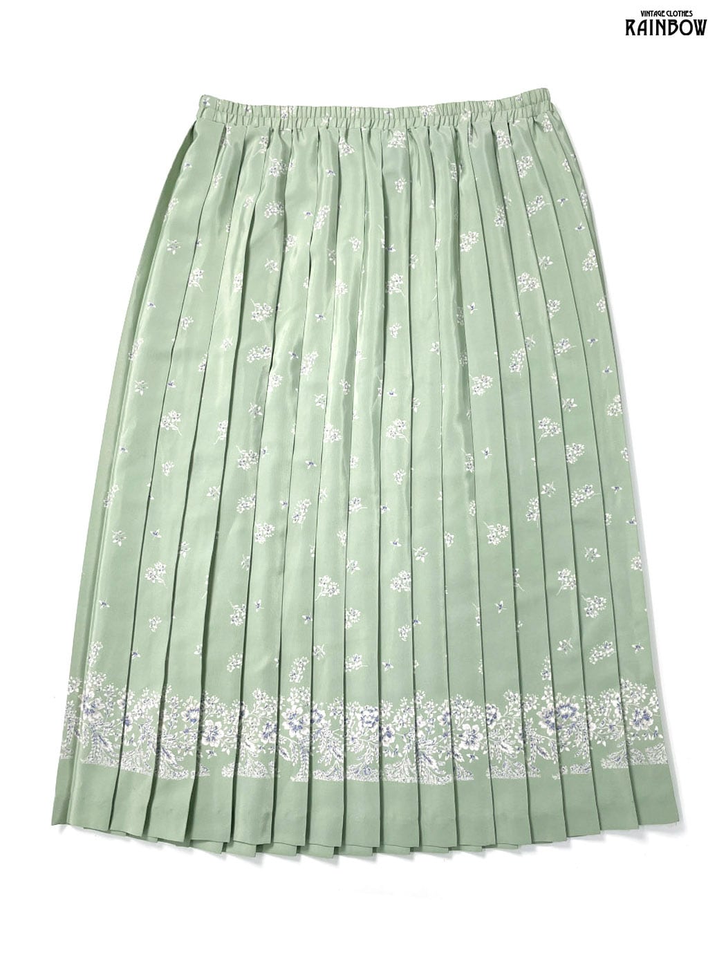 #スカート #膝丈 #プリーツ #緑 #花柄 #柄ライトスカート