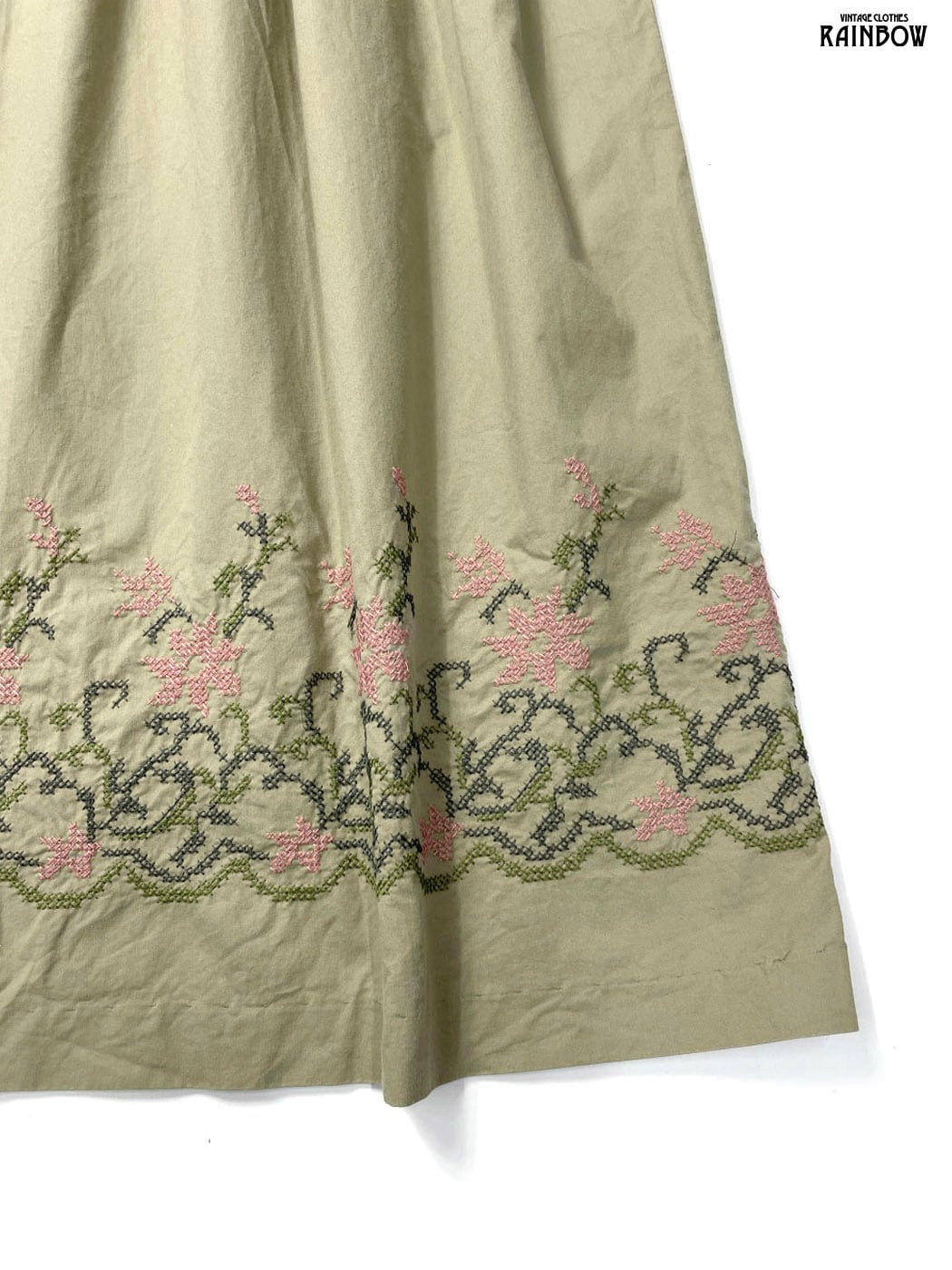 #スカート #ロングスリーブ #緑 #カーキ #花柄 #刺繍 #コットン #花柄スカート