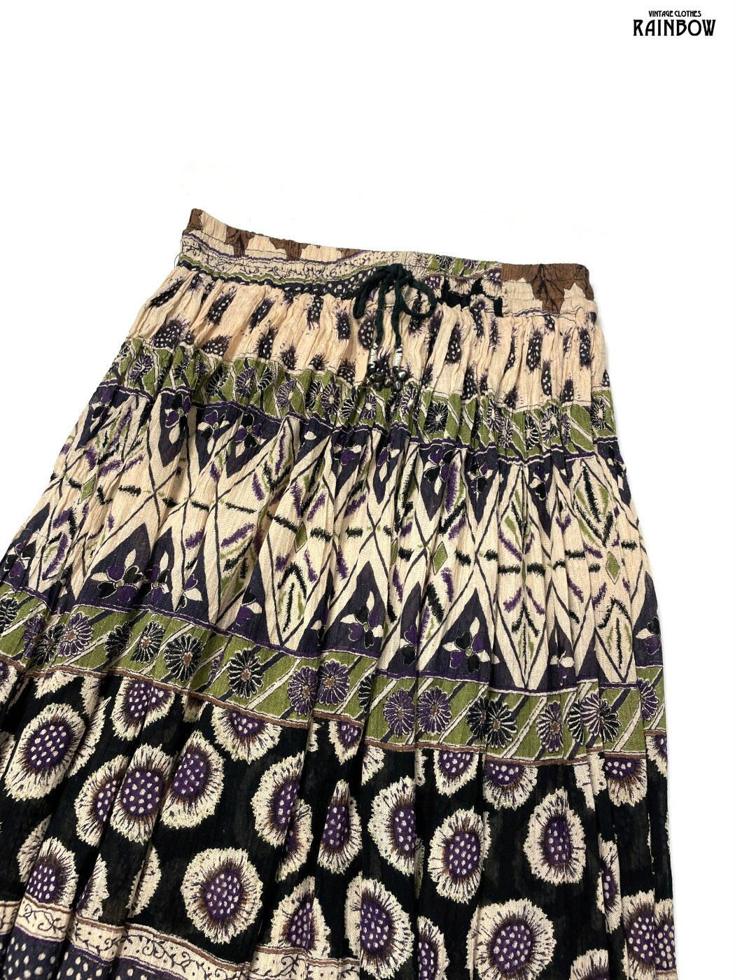 #スカート #ロングスリーブ #ロング丈 #ゴムウエスト #茶 #総柄 #エスニック柄 #シワ加工 #エスニック #レーヨン #エスニックスカート