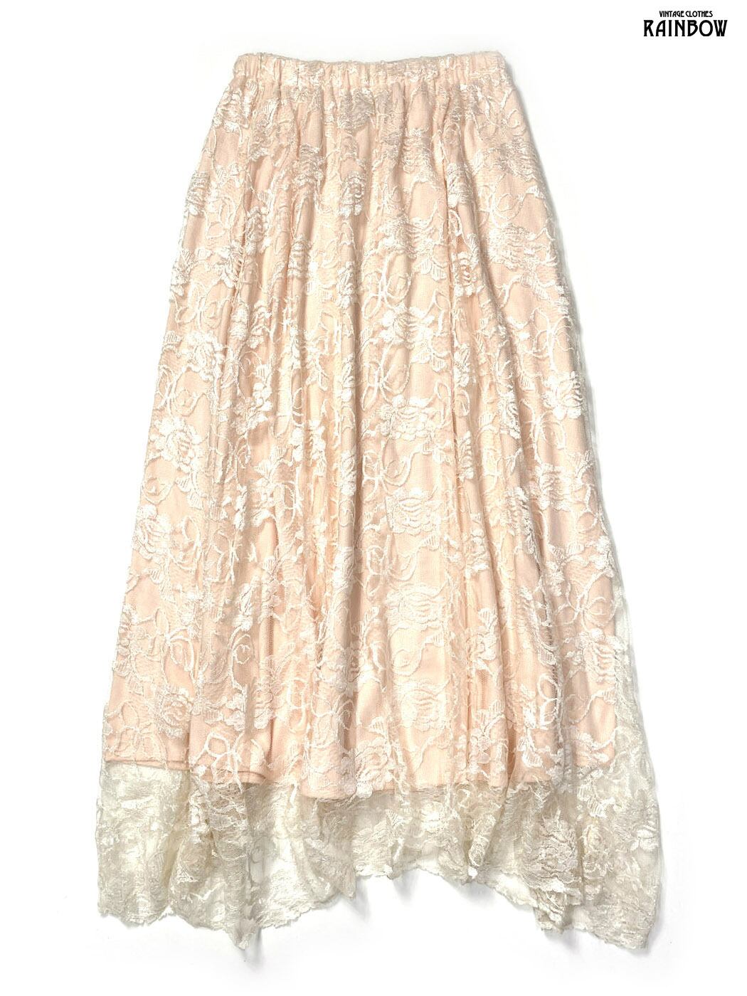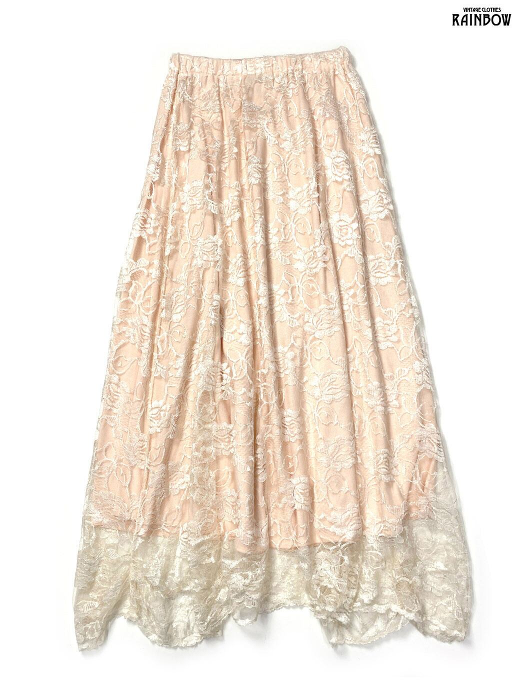 #スカート #ロング丈 #ゴムウエスト #ピンク #アメリカ製 #ガーリー #ヴィンテージ #総レース #総レーススカート