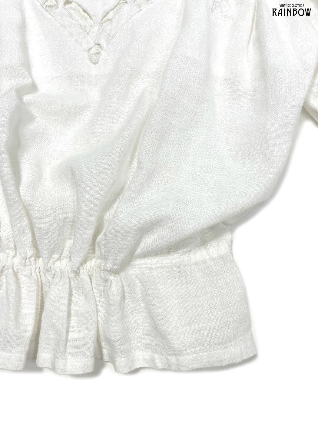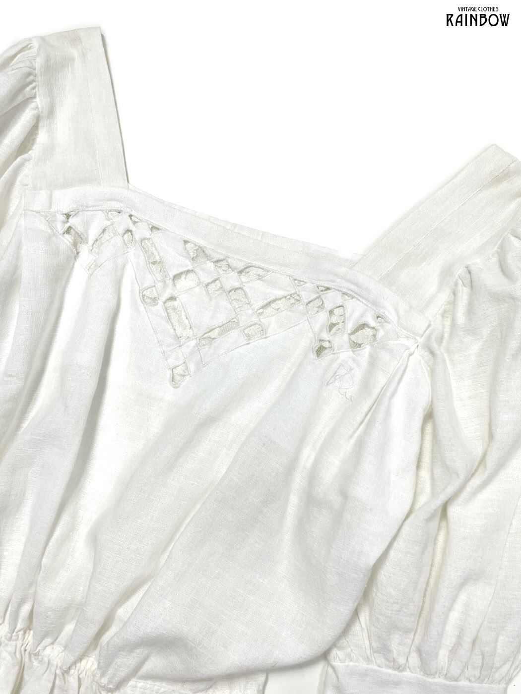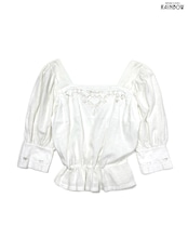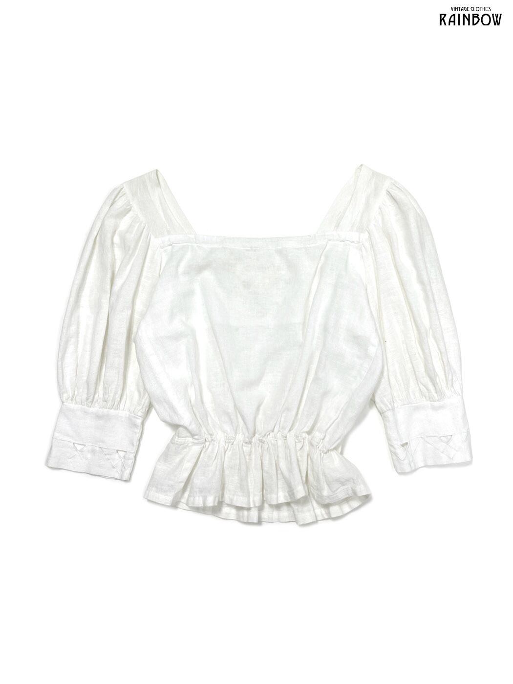 #ブラウス #bブラウス #ハーフスリーブ #白 #無地 #刺繍 #レース #スクエアネック #パフスリーブ #ガーリー #リネン #リネンシャツ