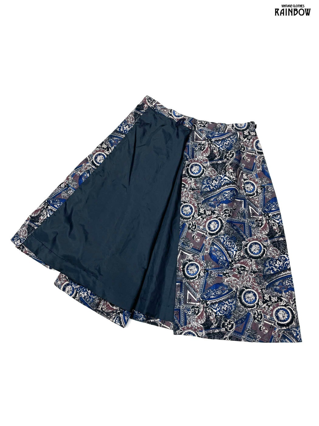 #スカート #ロング丈 #青 #紺 #総柄 #ペイズリー柄 #ドイツ製 #巻きデザイン #クラシック #レーヨン #柄スカート