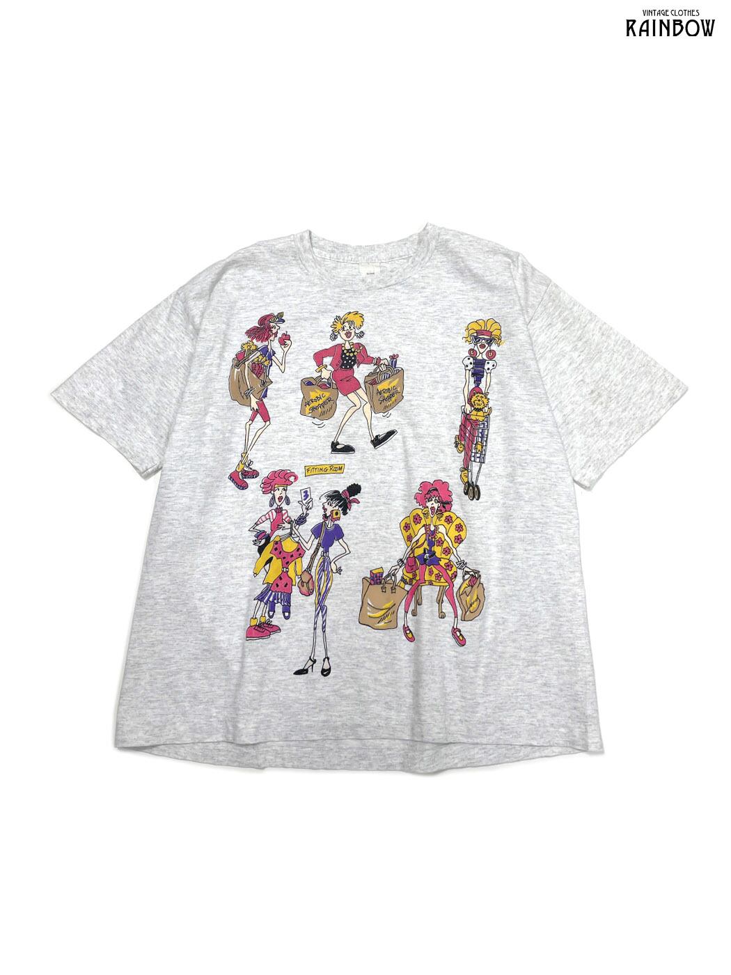 #トップス #Tシャツ #ハーフスリーブ #グレー #プリントデザイン #イラスト風 #アメリカ製 #ガーリー #ヴィンテージ #コットン #半袖プリントTシャツ