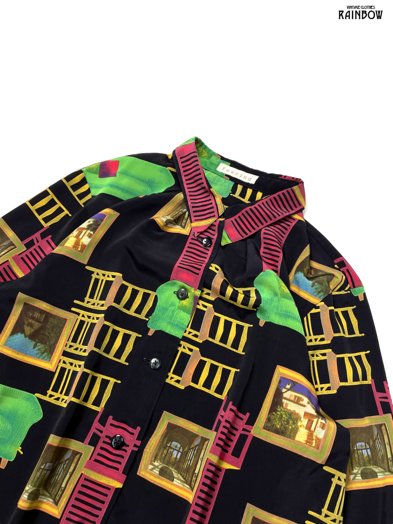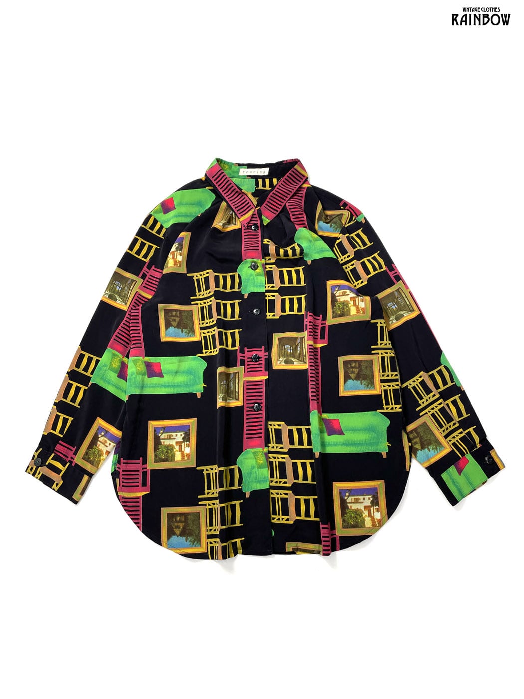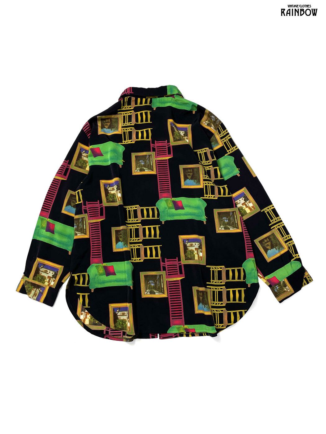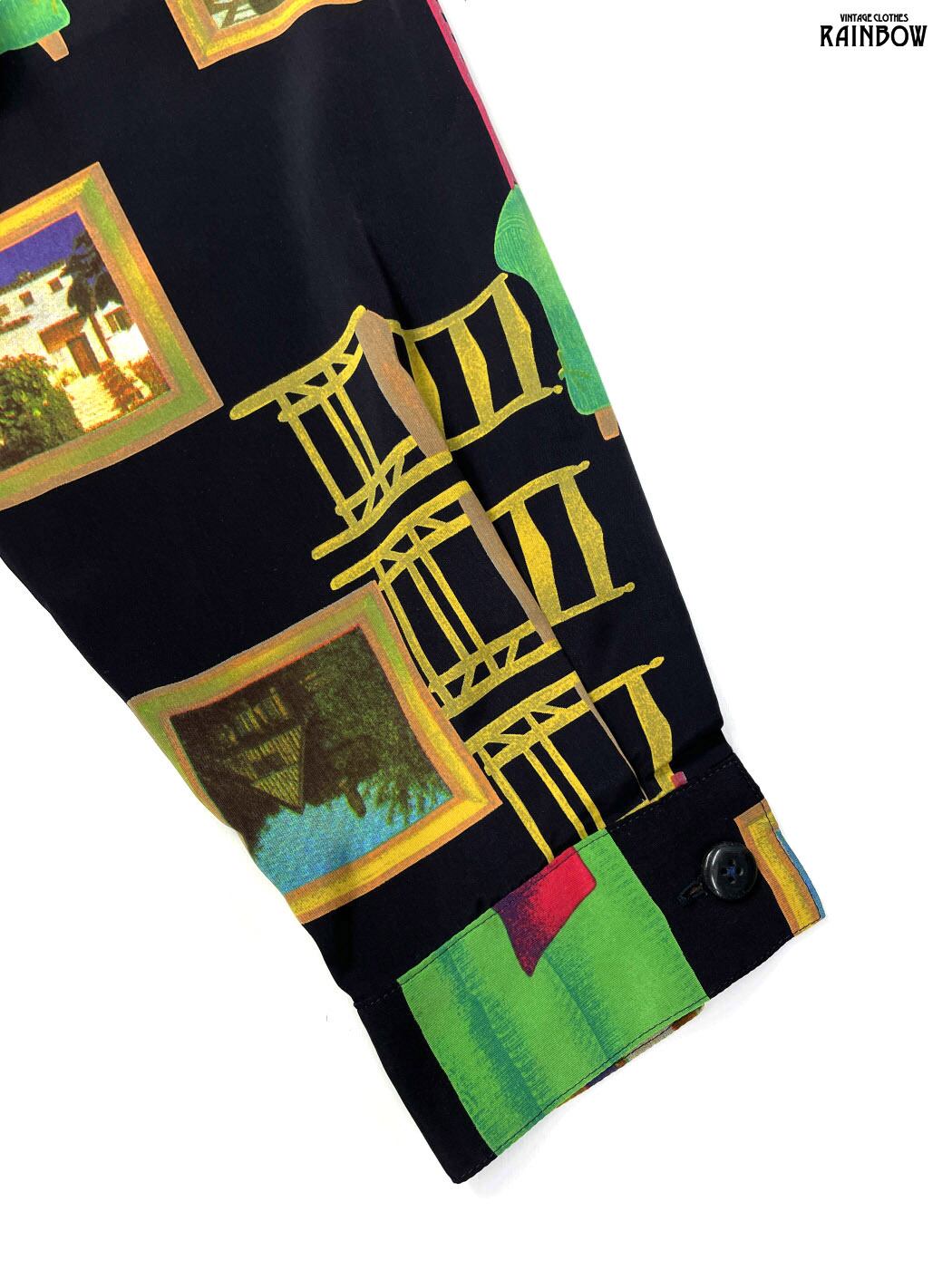 #ブラウス #シャツ #ロングスリーブ #黒 #総柄 #クラシック #レーヨン #柄シャツ