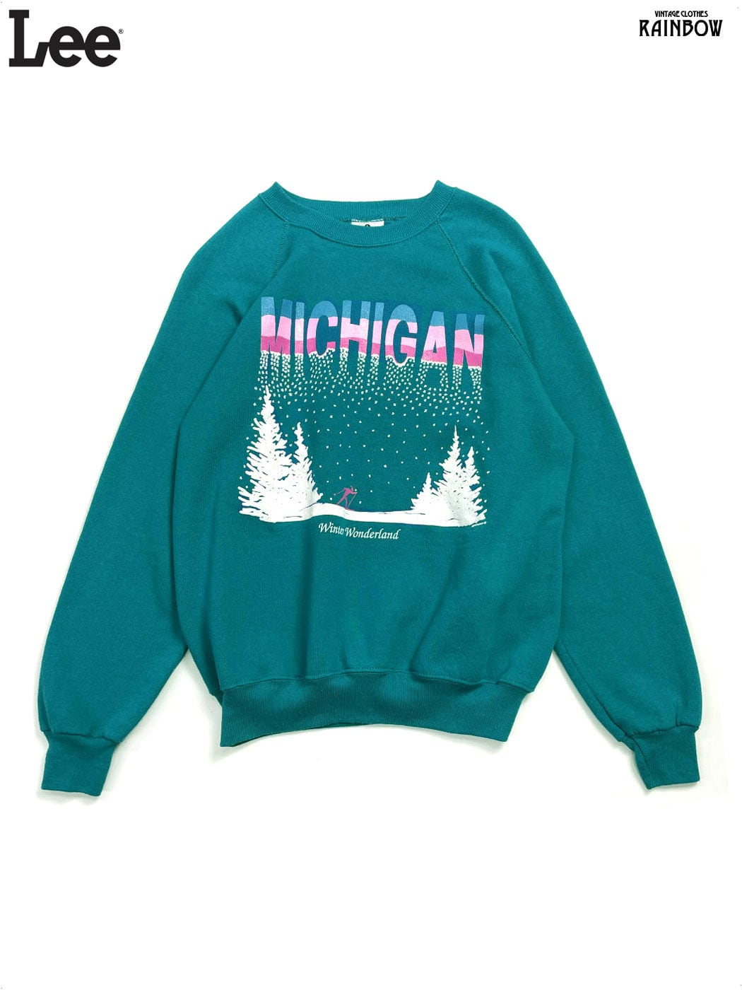 #トップス #スウェット #トレーナー #ロングスリーブ #緑 #プリントデザイン #スキー #MICHIGAN #アメリカ製 #スウェット地 #プリントスウェット