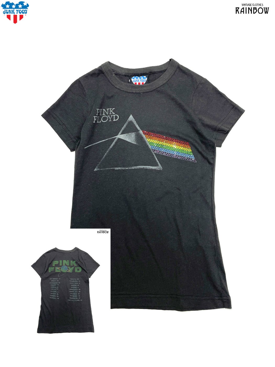 古着 JUNK FOOD ジャンクフード PINK FLOYD ラインストーン アメリカ製 バックプリント コットン 半袖 Tシャツ 黒 チャコールグレー (ttu2507068)