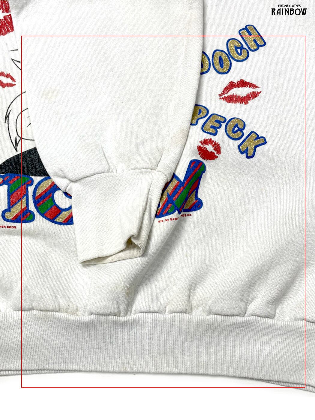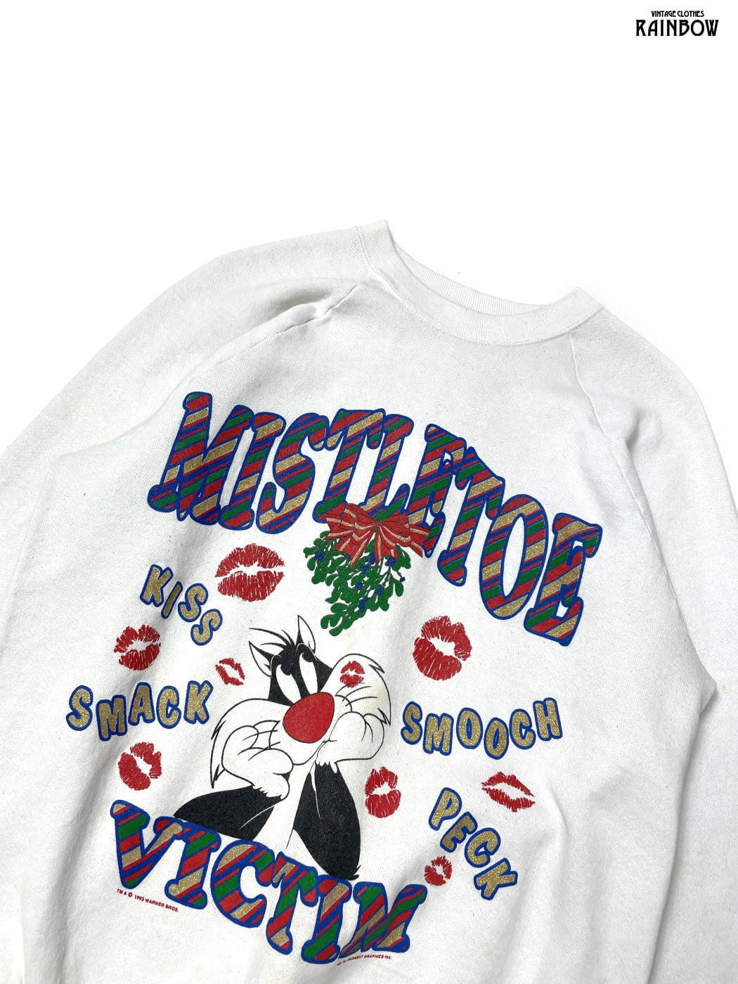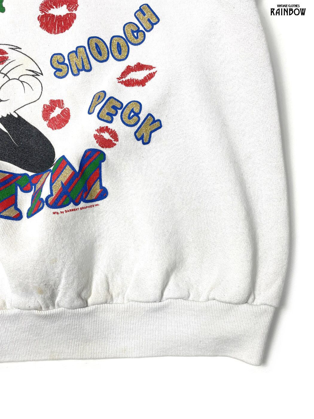 #トップス #スウェット #トレーナー #ロングスリーブ #白 #プリントデザイン #キャラクター #LOONEY TUNES #ルーニーテューンズ #シルベスターキャット #スウェット地 #プリントスウェット