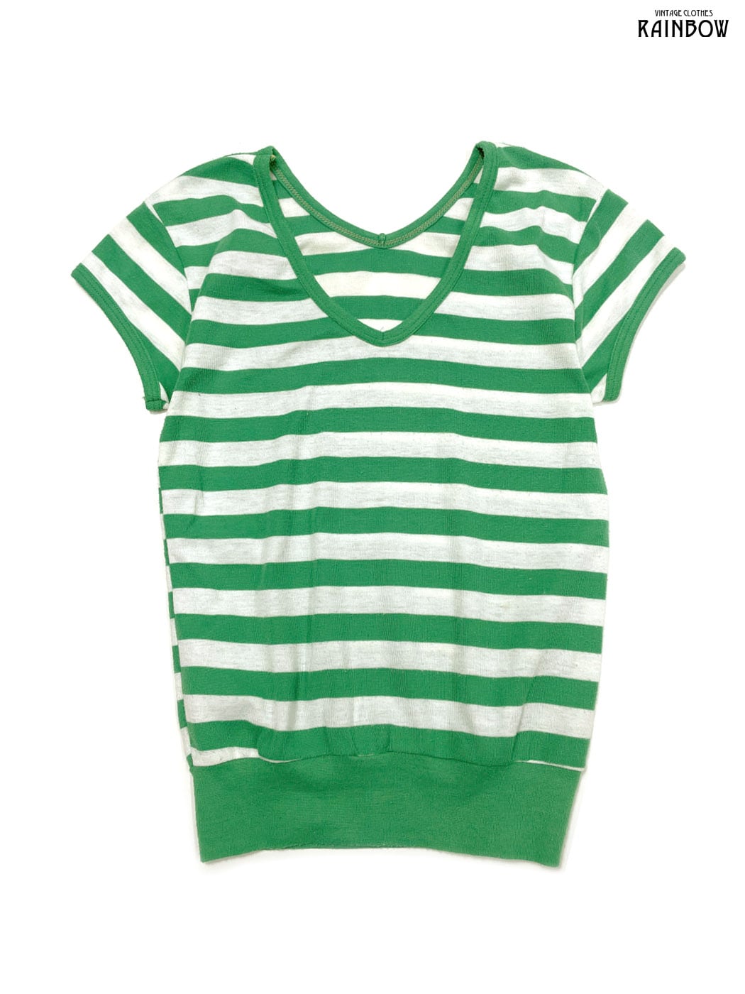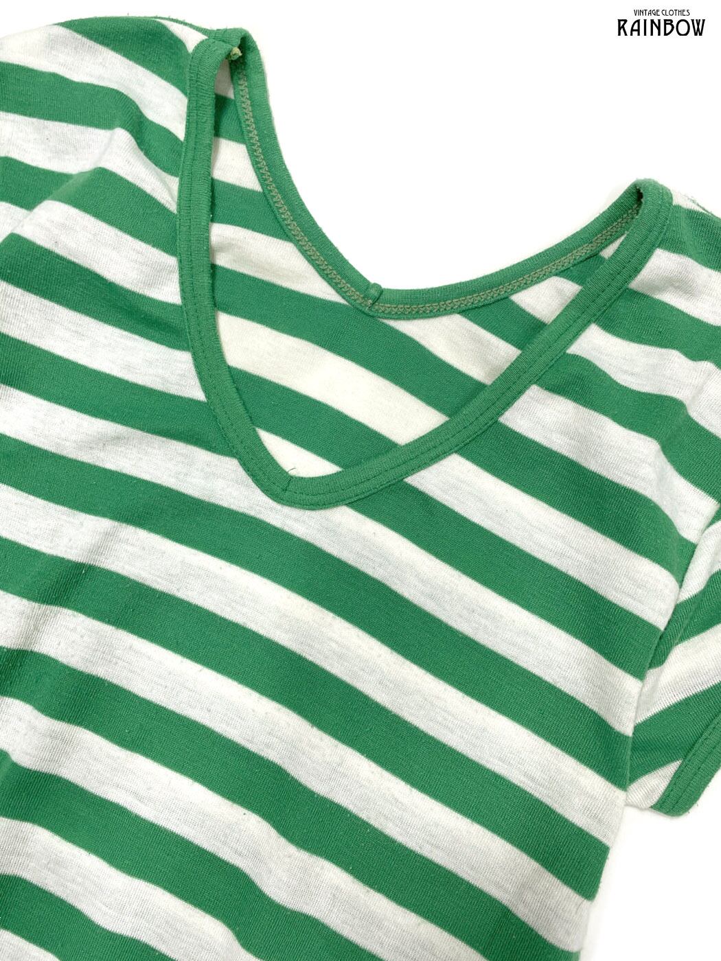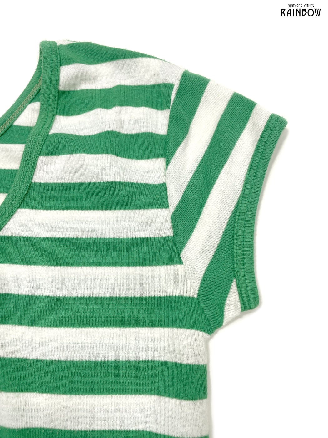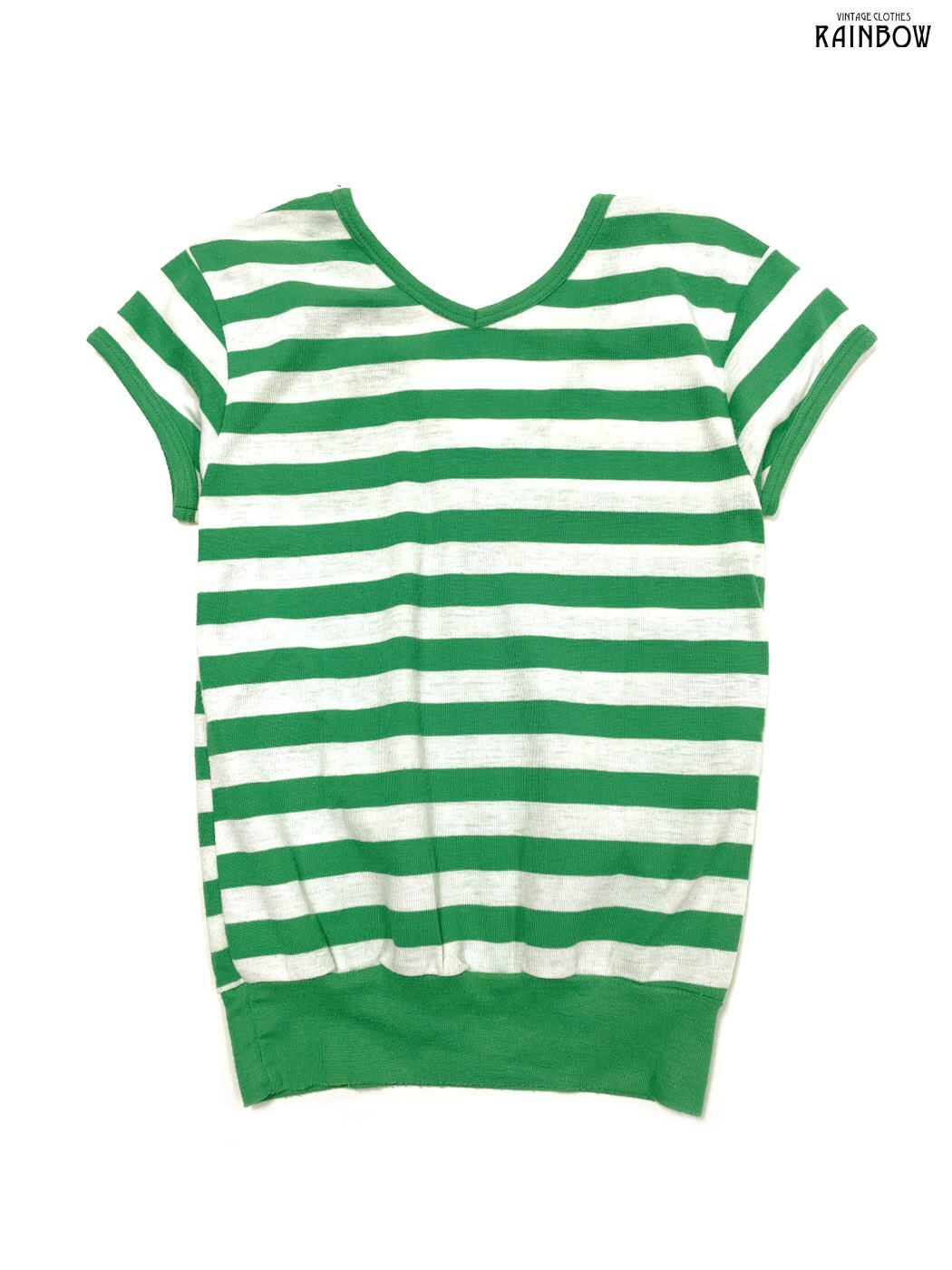 #トップス #プルオーバー #ハーフスリーブ #緑 #ボーダー柄 #ガーリー #半袖柄プルオーバー