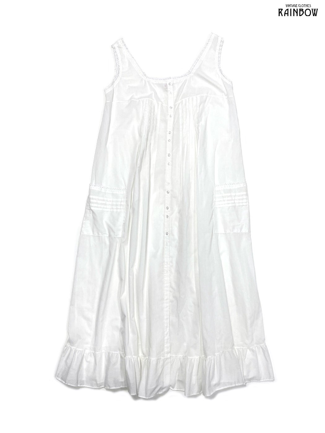 #ワンピース #ノースリーブ #ロング丈 #ティアード #白 #無地 #フリル #レース #前開き #ガーリー #コットン #レースワンピース
