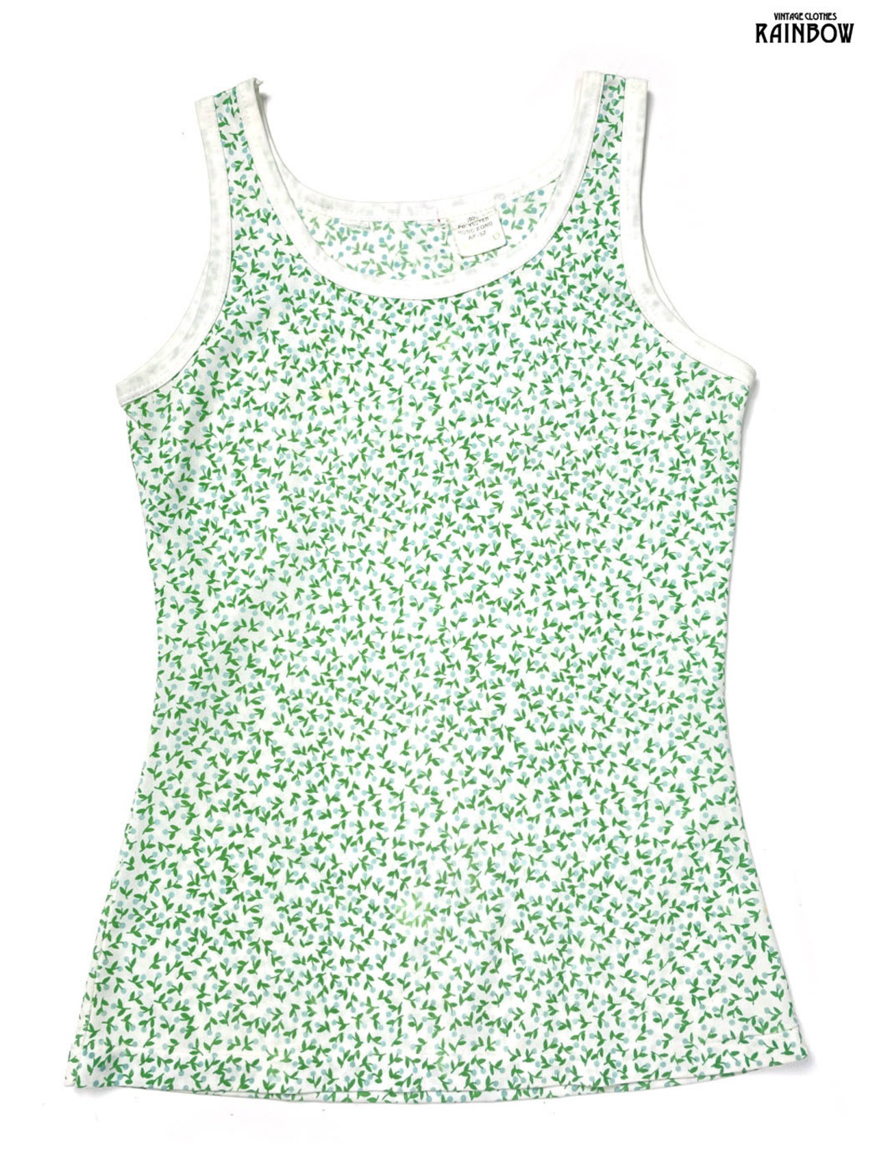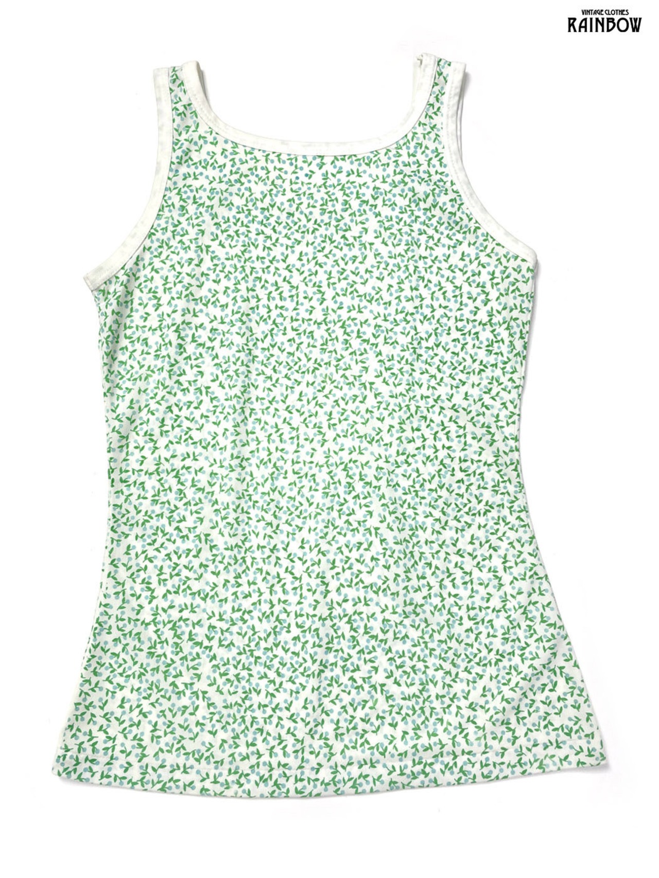 #トップス #タンクトップ #ノースリーブ #緑 #花柄 #カットソー地 #タンクトップ