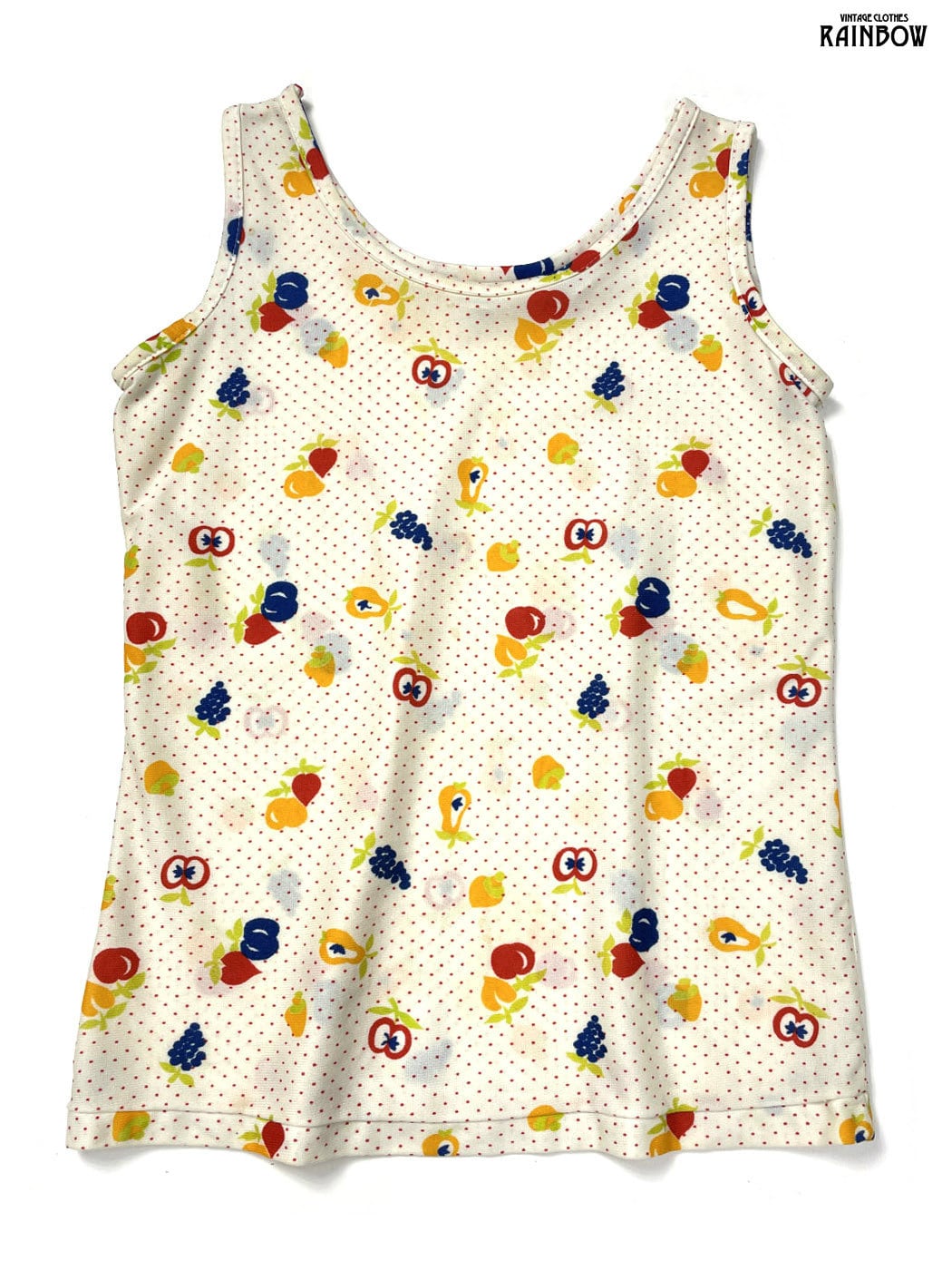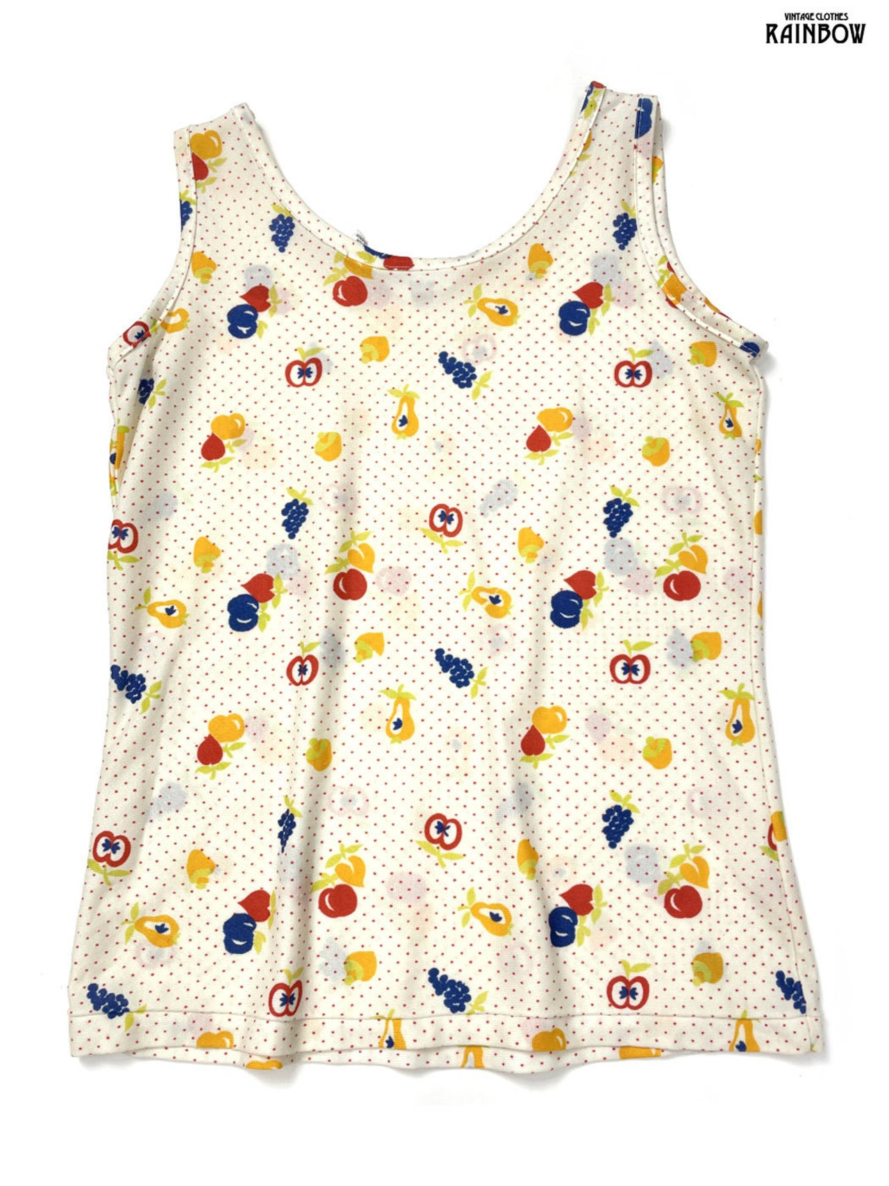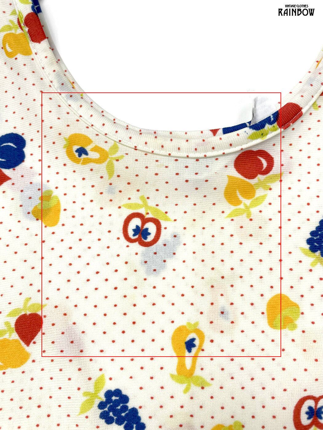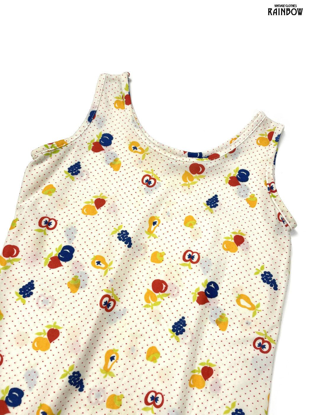 #トップス #タンクトップ #ノースリーブ #ベージュ #ドット柄 フルーツ柄 #ナイロン #タンクトップ