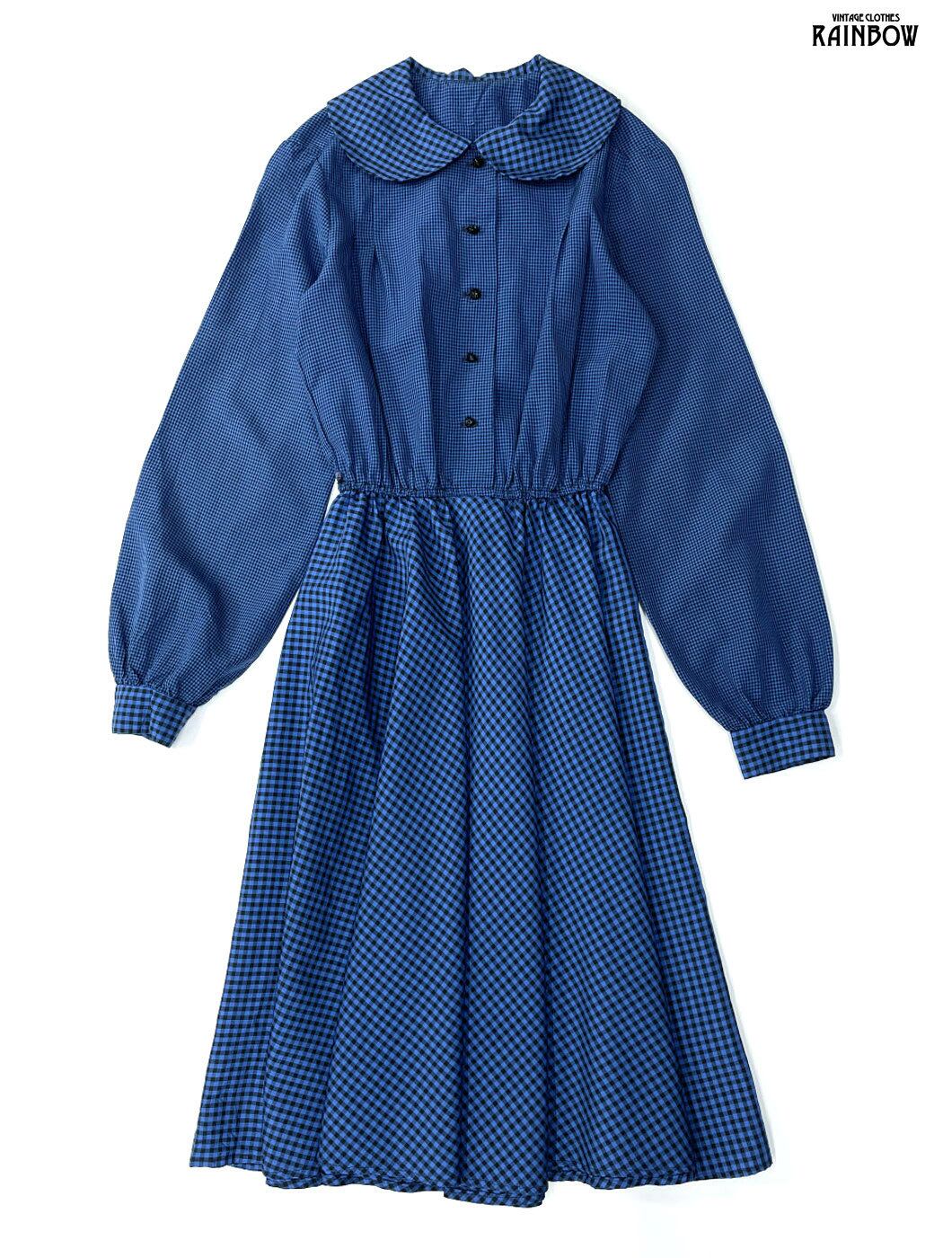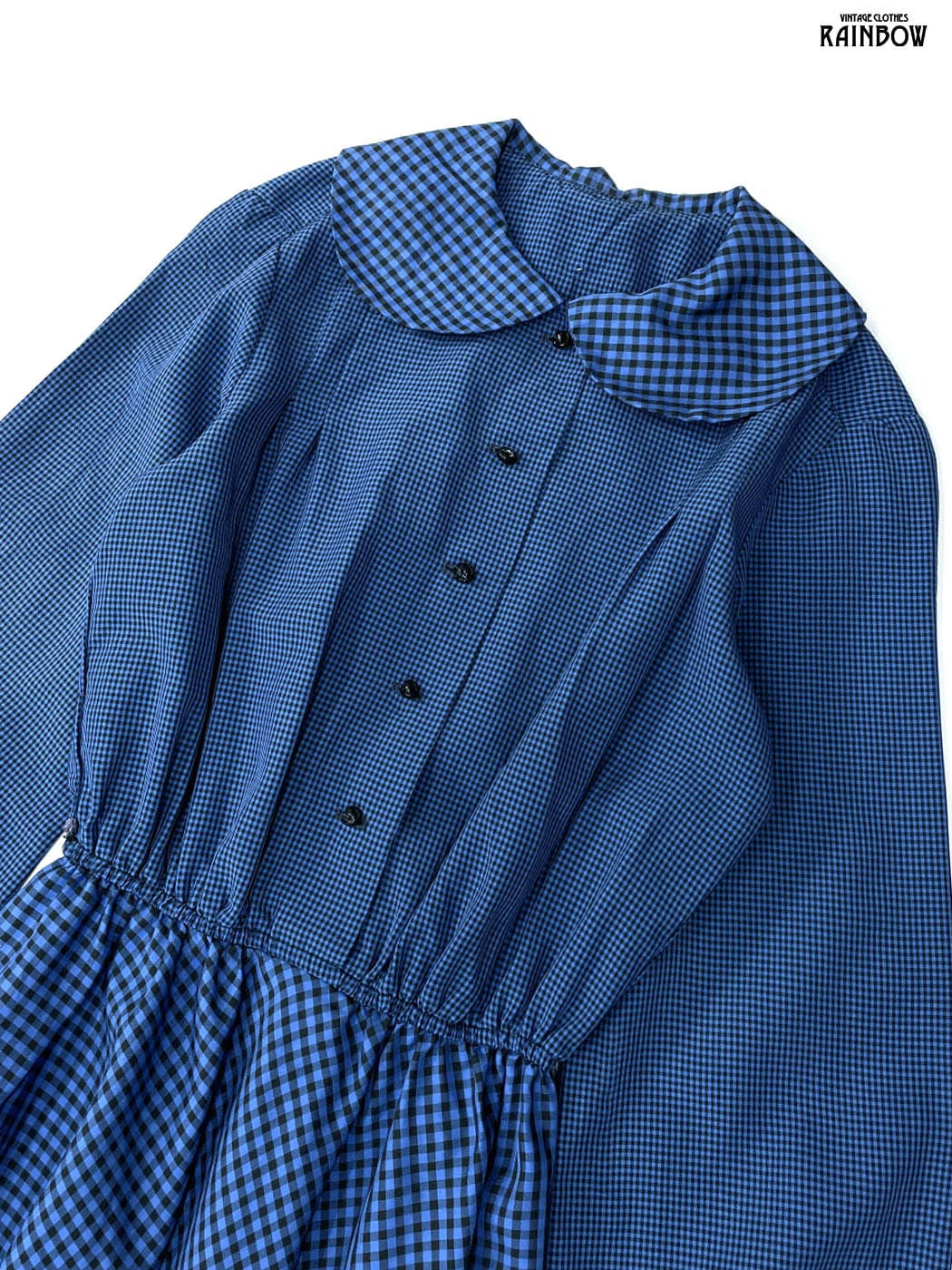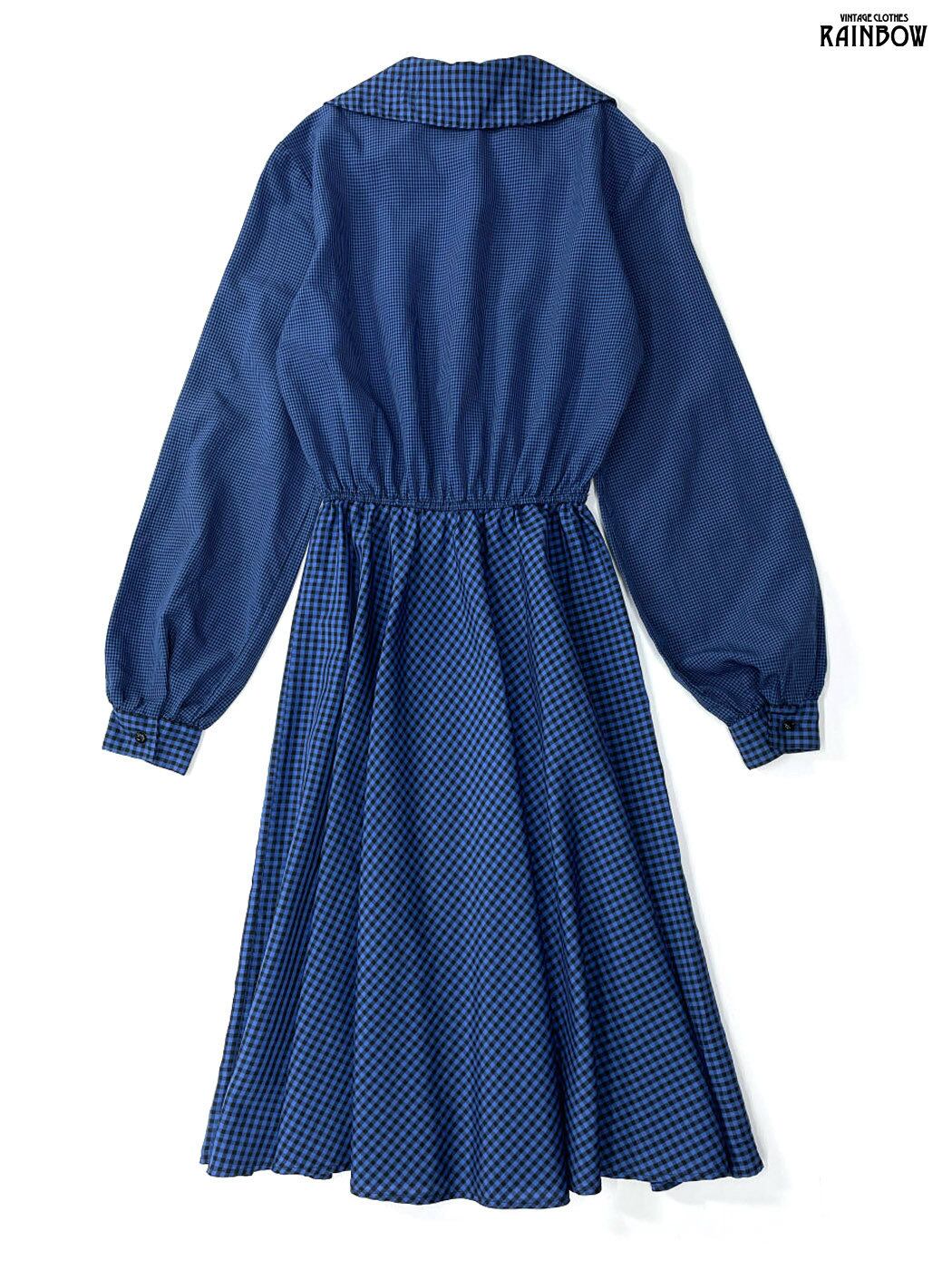 #ワンピース #ロングスリーブ #ロング丈 #ゴムウエスト #青 #チェック柄 #ギンガムチェック柄 #長袖チェック柄ワンピース
