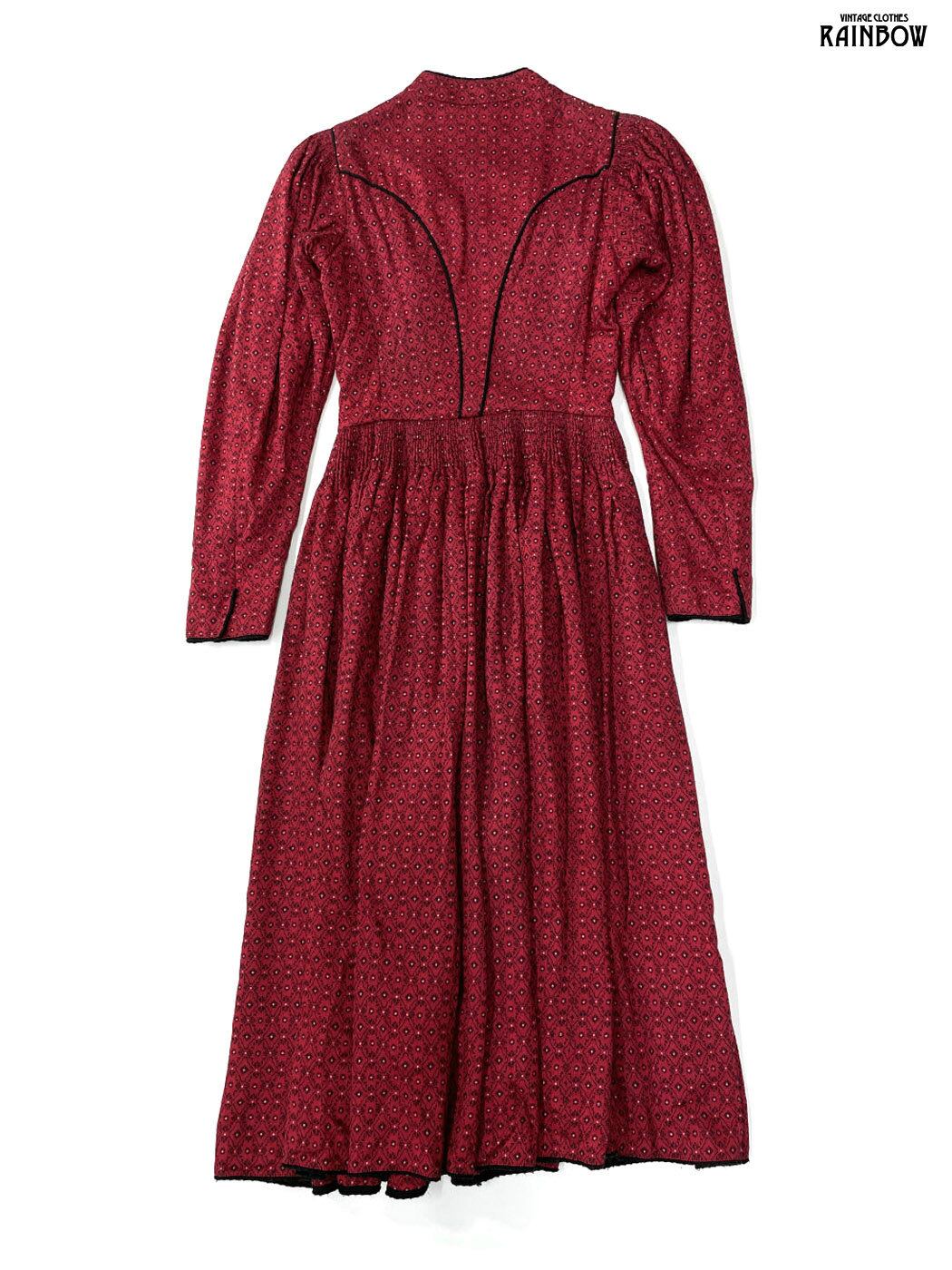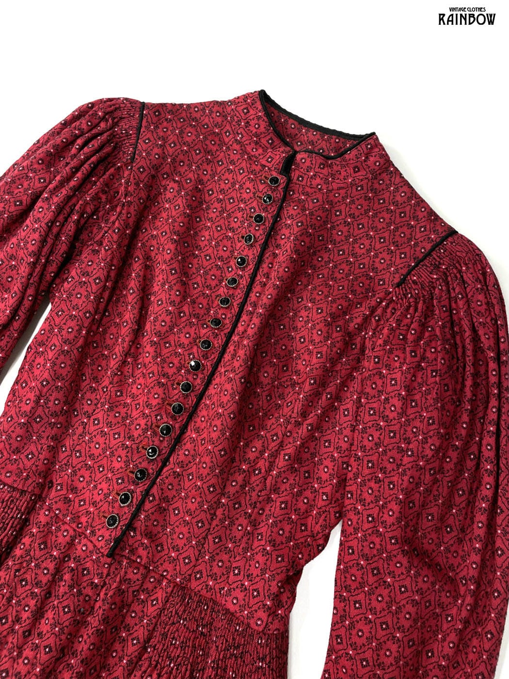 #ワンピース #ロングスリーブ #ロング丈 #ウエスト切り替え #赤 #総柄 #クラシック #コットン #長袖総柄ワンピース