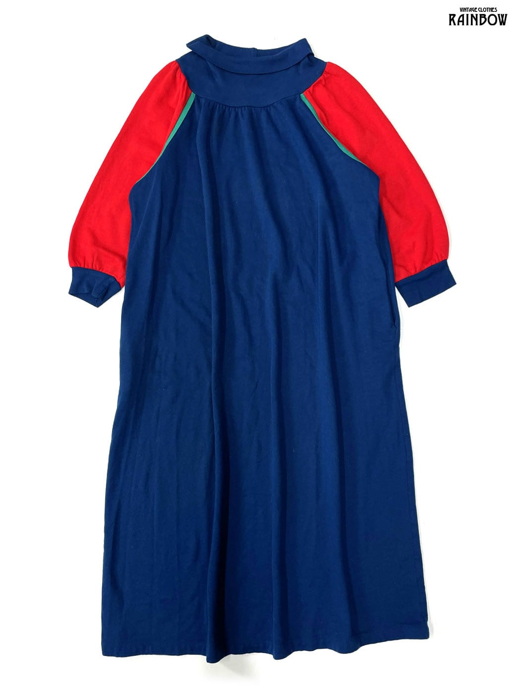 #ワンピース #ロングスリーブ #ロング丈 #紺 #無地 #アメリカ製 #コットン #長袖無地ワンピース #タートルネック