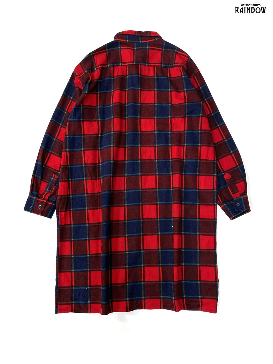 #ワンピース #ロングスリーブ #ロング丈 #赤 #チェック柄 #前開き #コットン #長袖チェック柄ワンピース