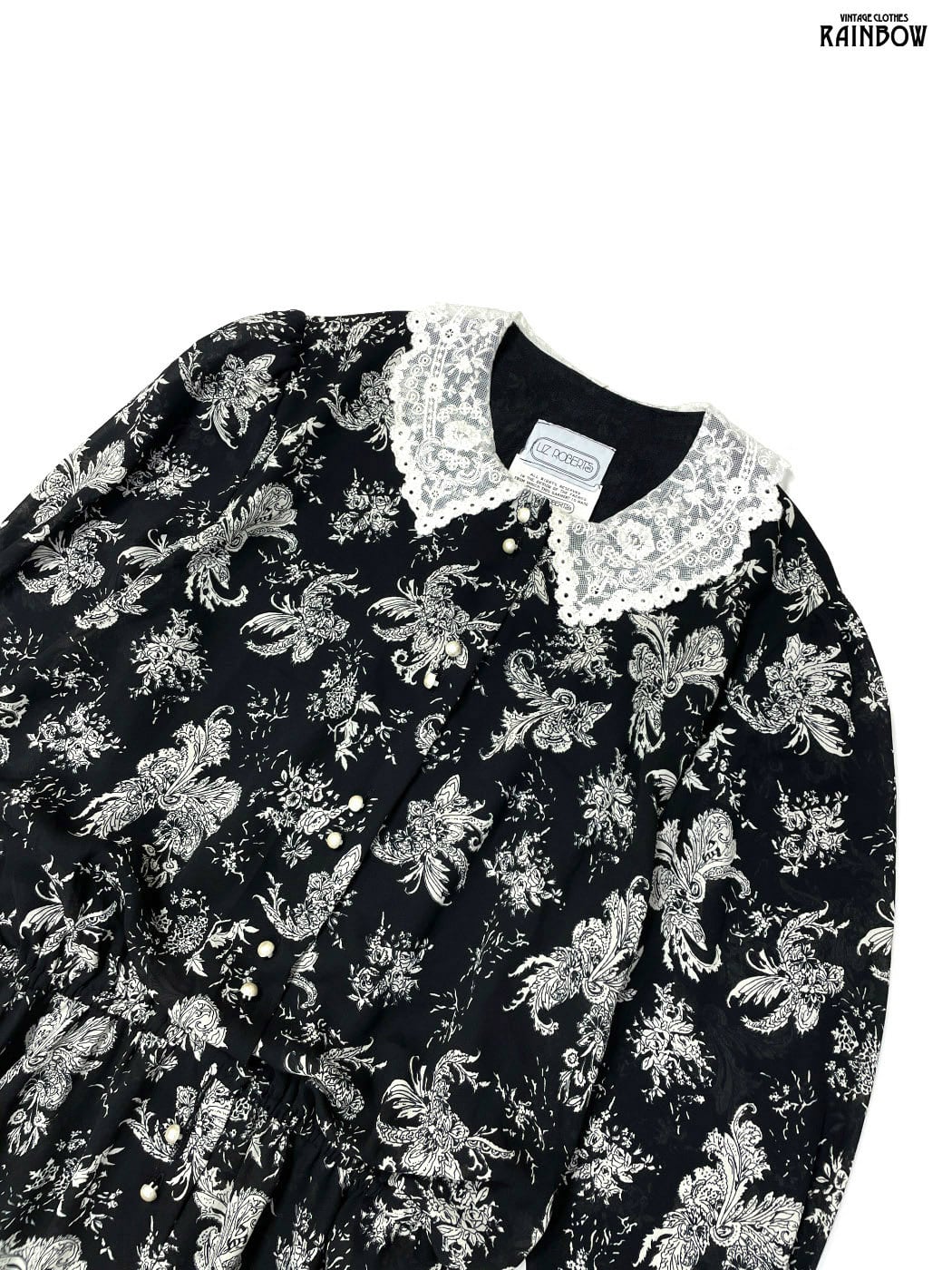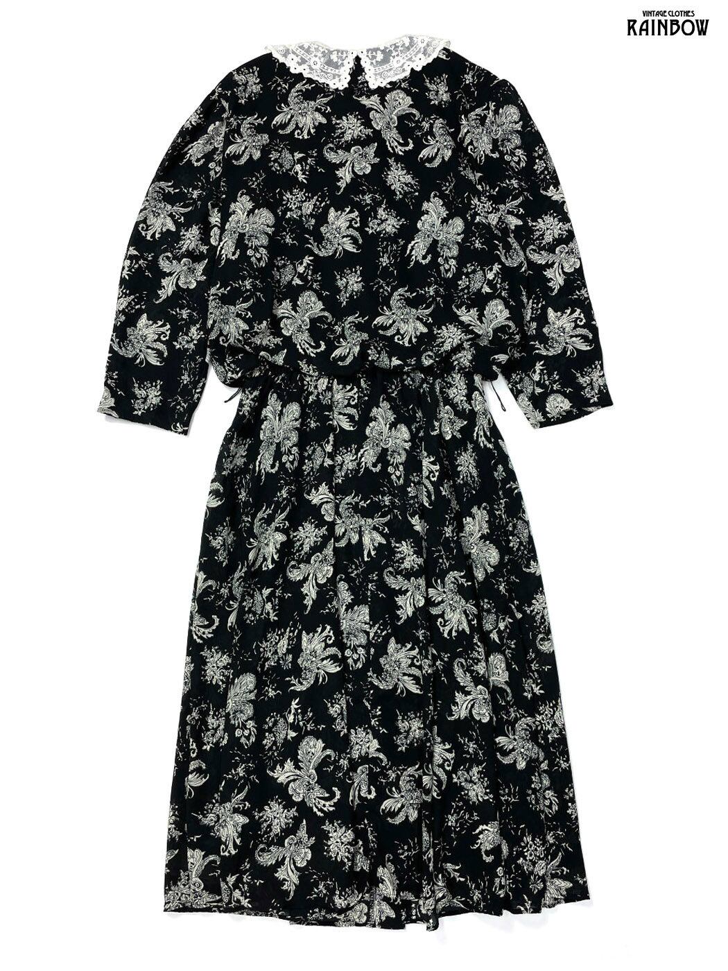 #ワンピース #ロングスリーブ #ロング丈 #ゴムウエスト #黒 #花柄 #レース #クラシック #シフォン #長袖花柄ワンピース