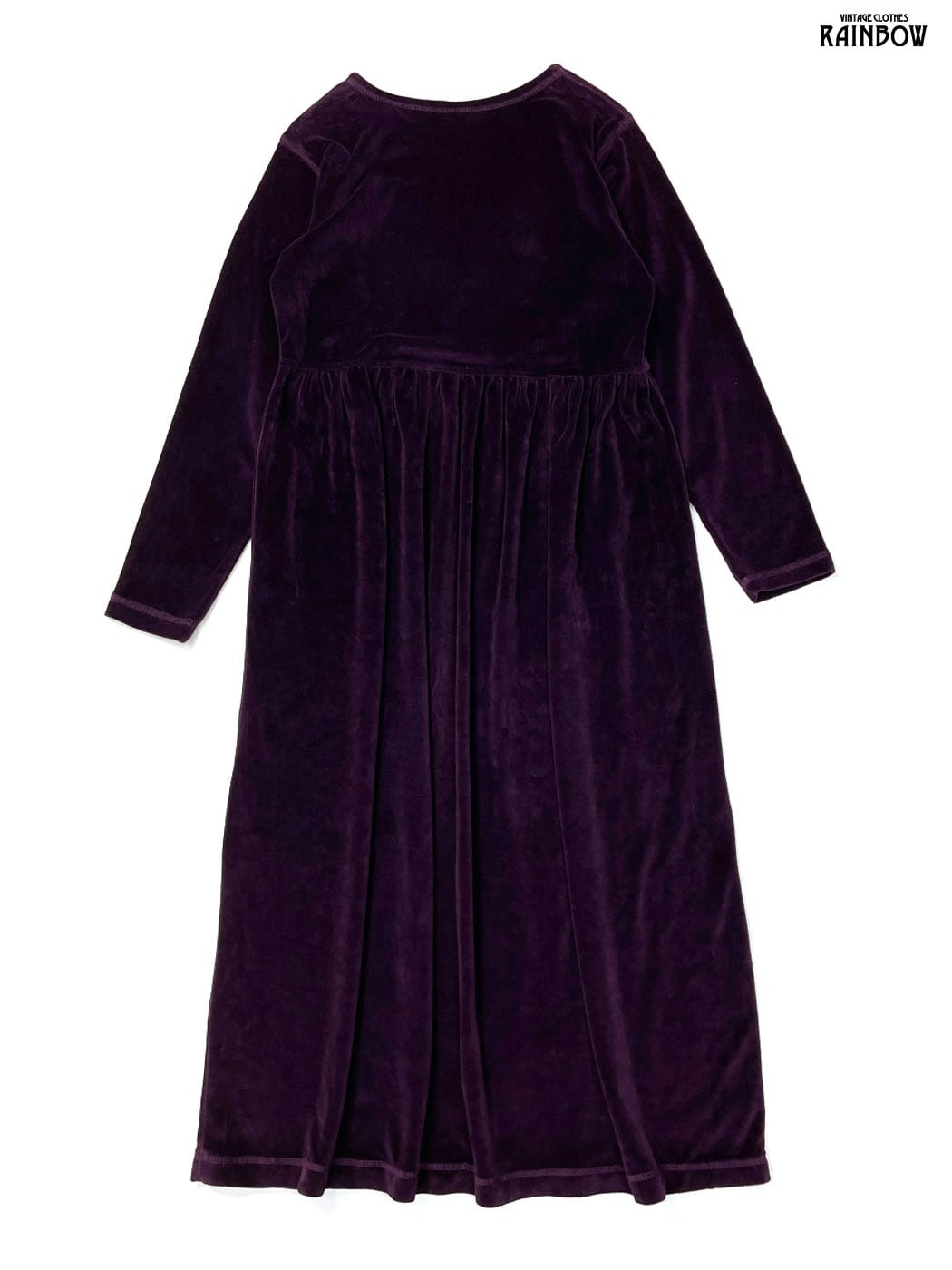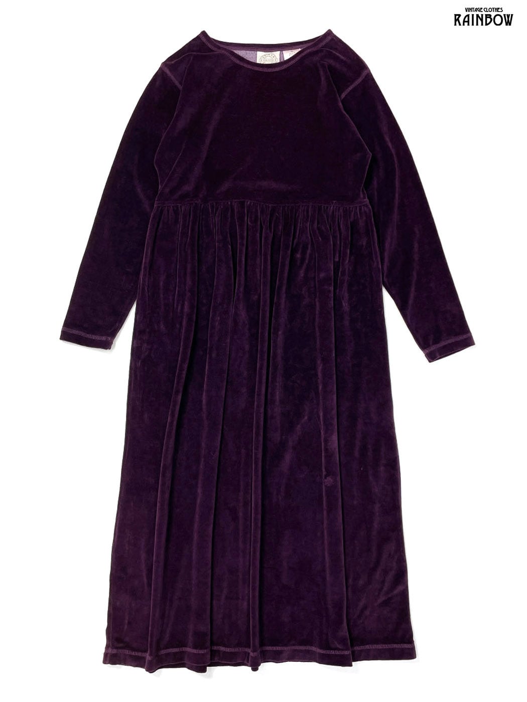 #ワンピース #ロングスリーブ #ロング丈 #ウエスト切り替え #紫 #無地 #シンプル #ベロア #ベロアワンピース