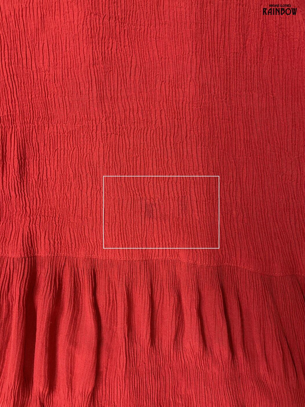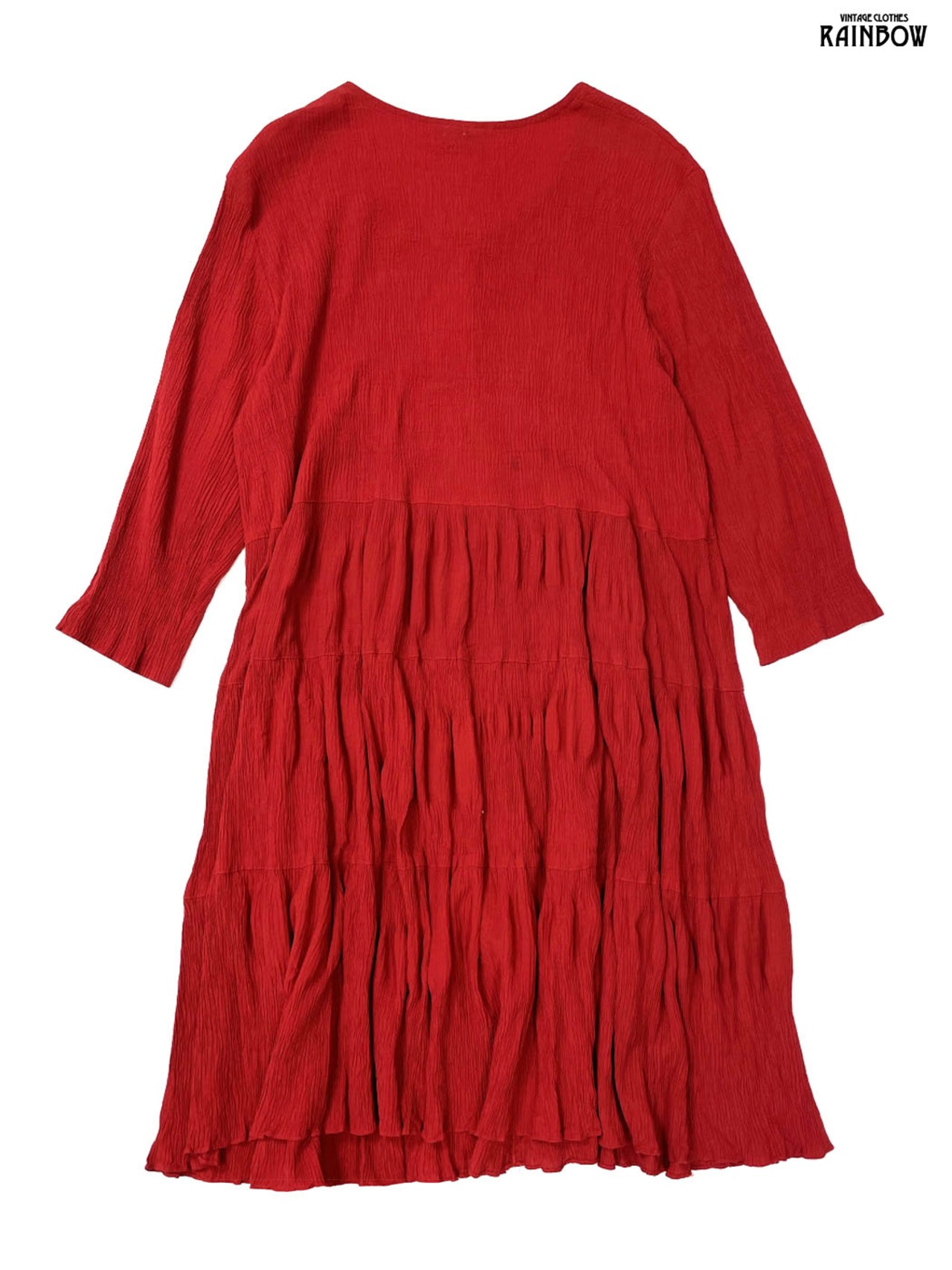#ワンピース #ロングスリーブ #ロング丈 #ティアード #赤 #無地 #シェルボタン #シワ加工 #シンプル #レーヨン #長袖無地ワンピース