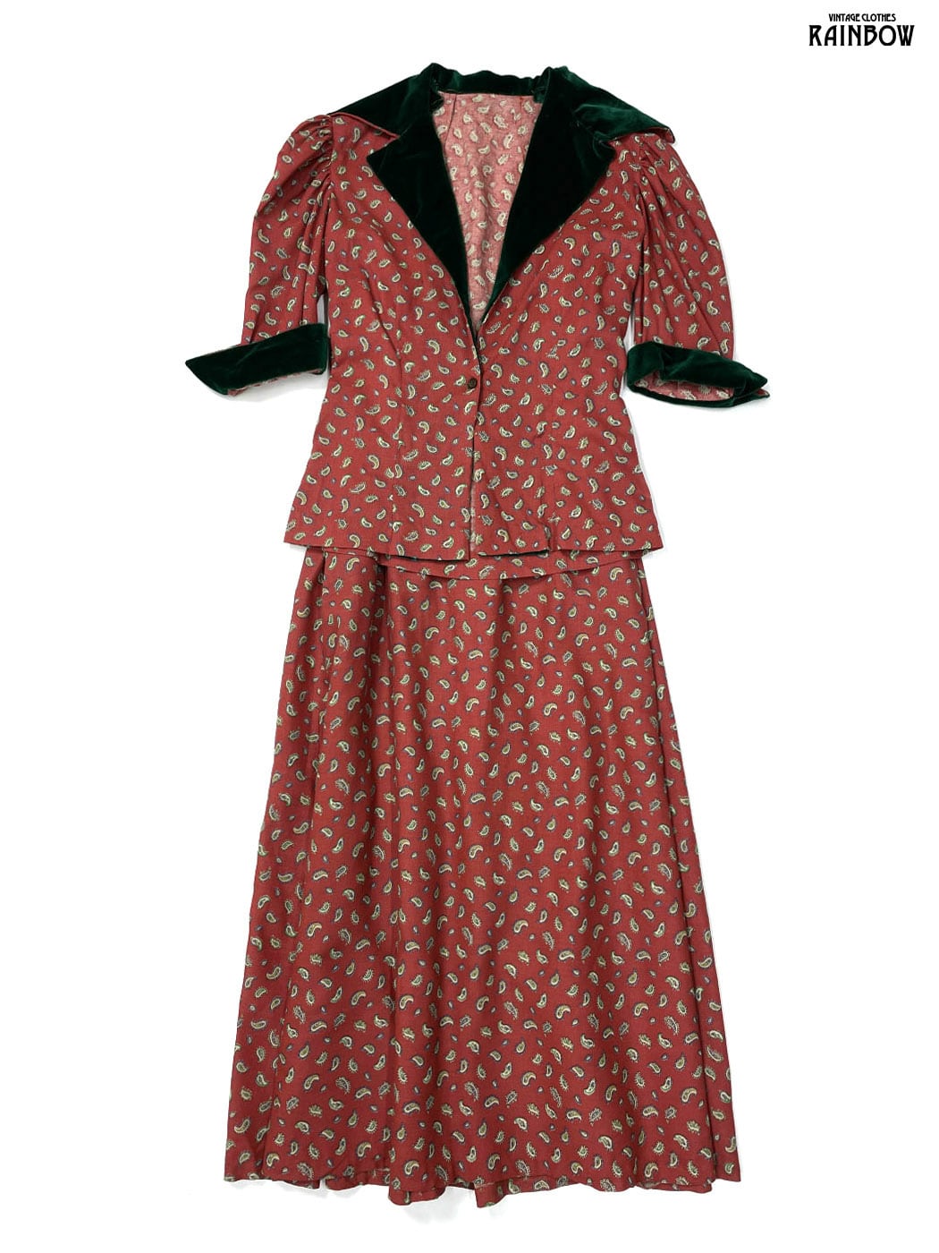 #ワンピース #セットアップ #ハーフスリーブ #ロング丈 #赤 #オレンジ #総柄 #ペイズリー柄 #コットン #セットアップ