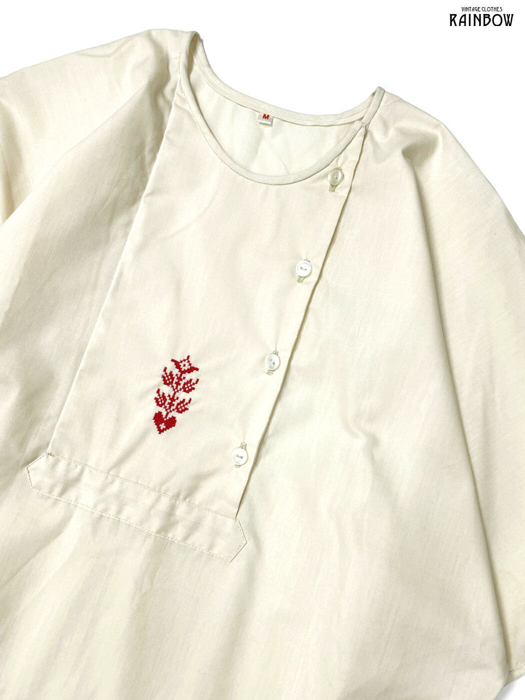 #ブラウス #bブラウス #ハーフスリーブ #ベージュ #無地 #ワンポイント #刺繍 #前開き #オーストリア製 #ナチュラル #コットン #刺繍シャツ