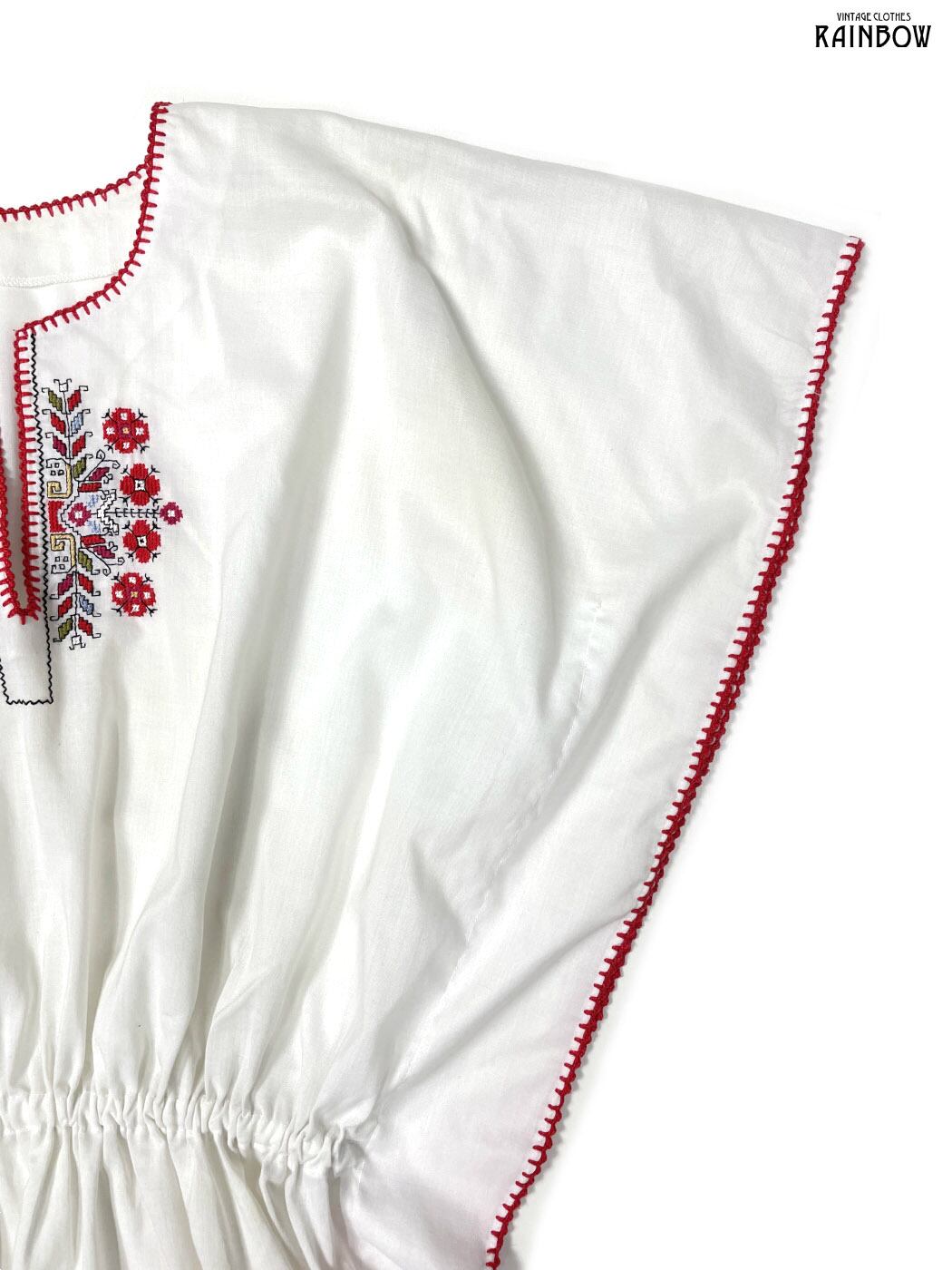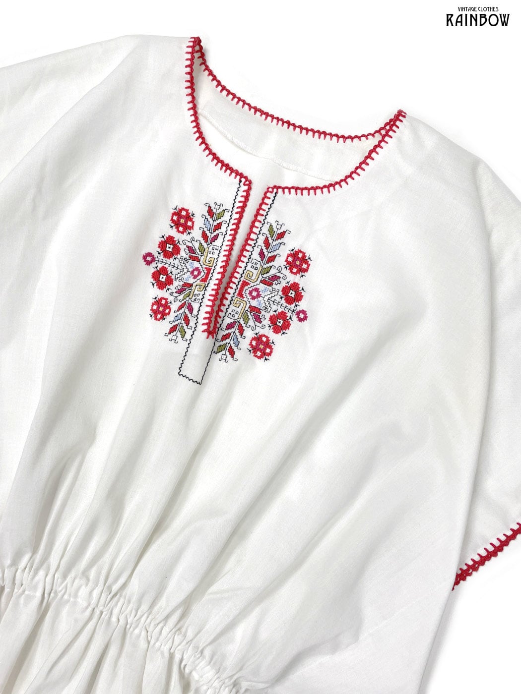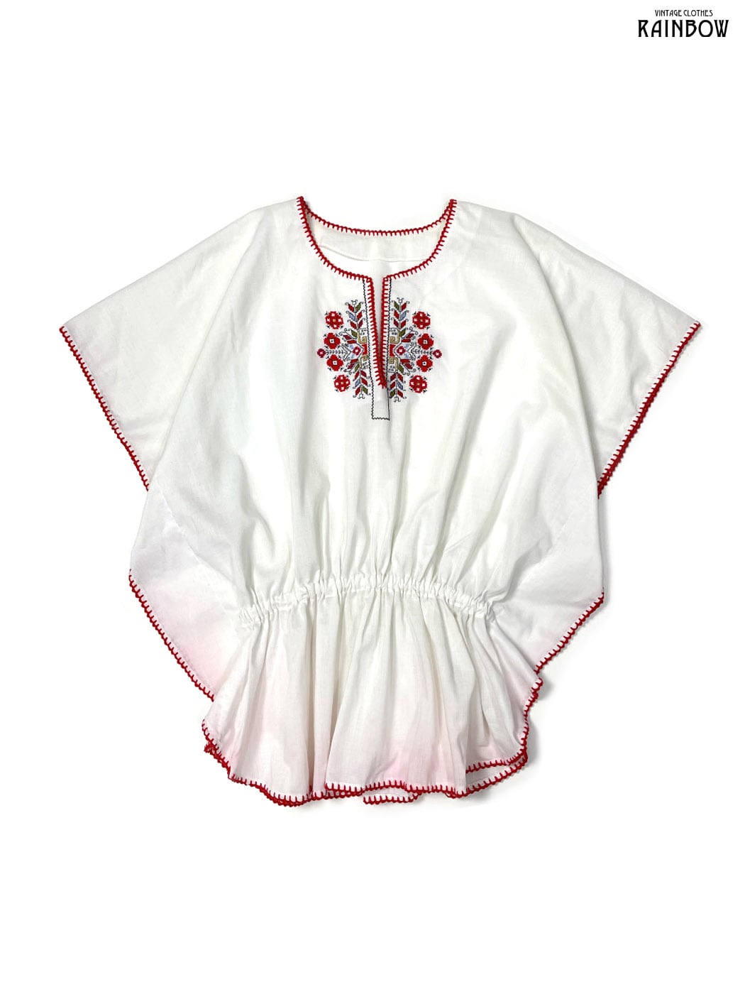 #ブラウス #bブラウス #ハーフスリーブ #白 #生成り #花柄 #刺繍 #ポンチョ風 #ガーリー #コットン #刺繍シャツ