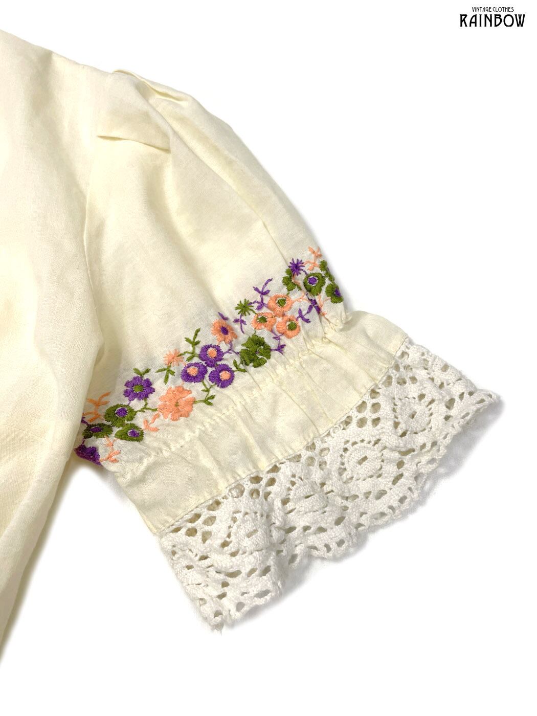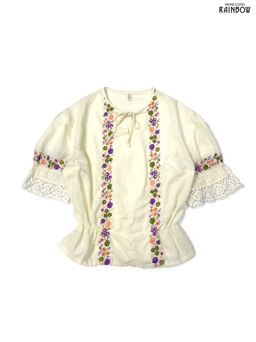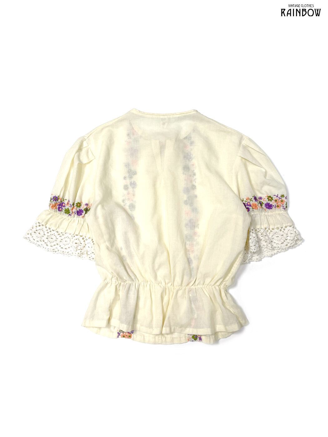 #ブラウス #bブラウス #ハーフスリーブ #黄 #花柄 #刺繍 #リボン #レース #ガーリー #コットン #刺繍シャツ