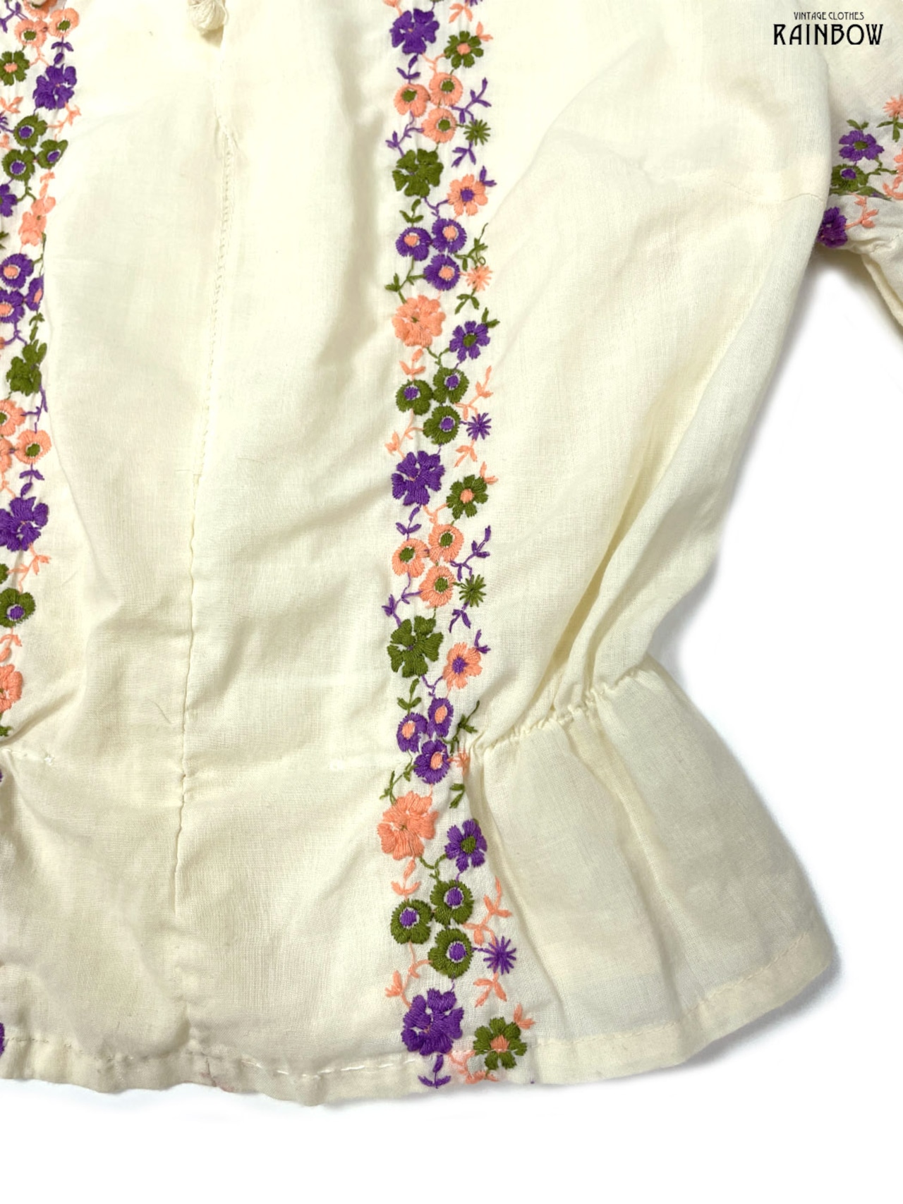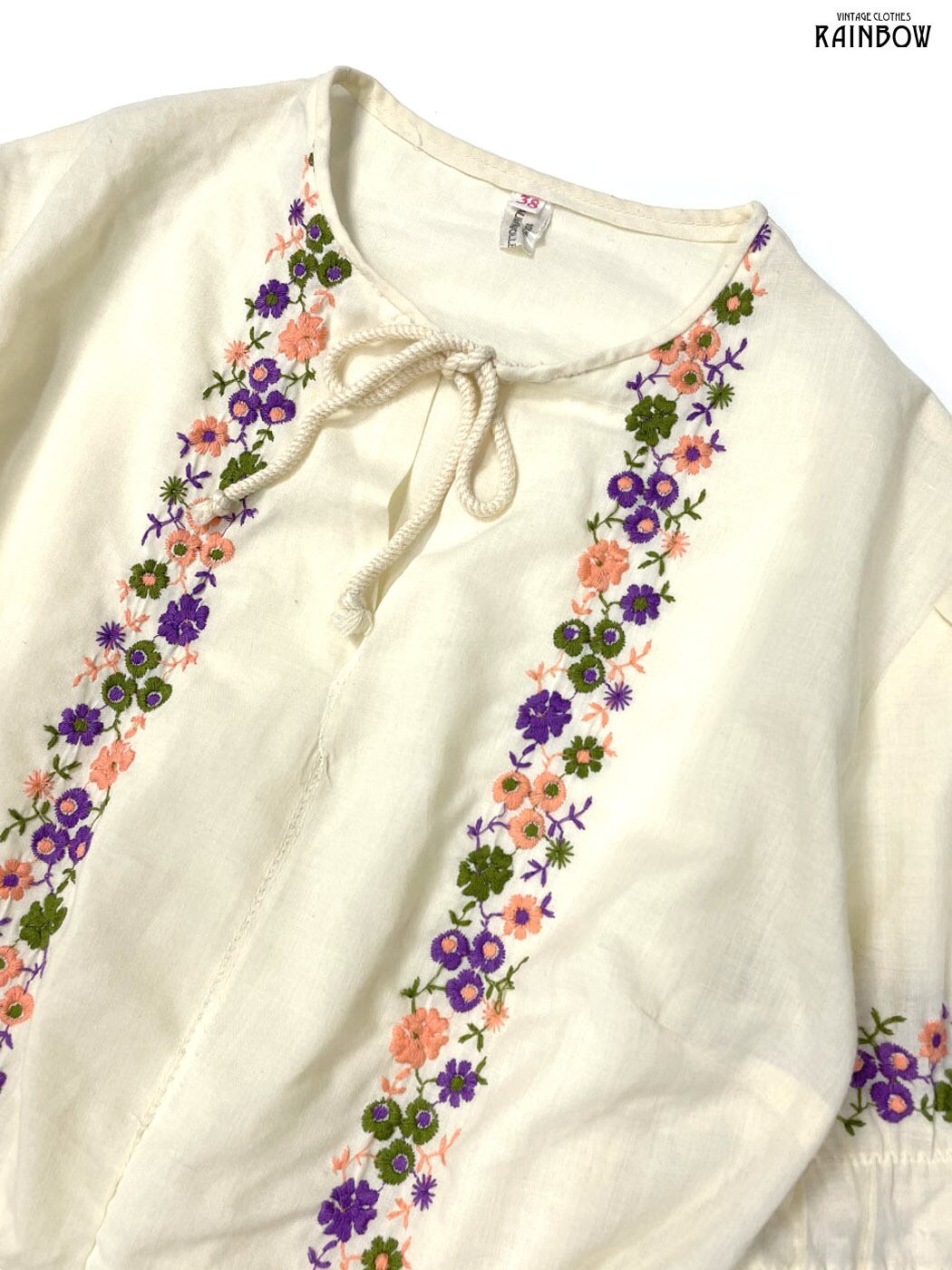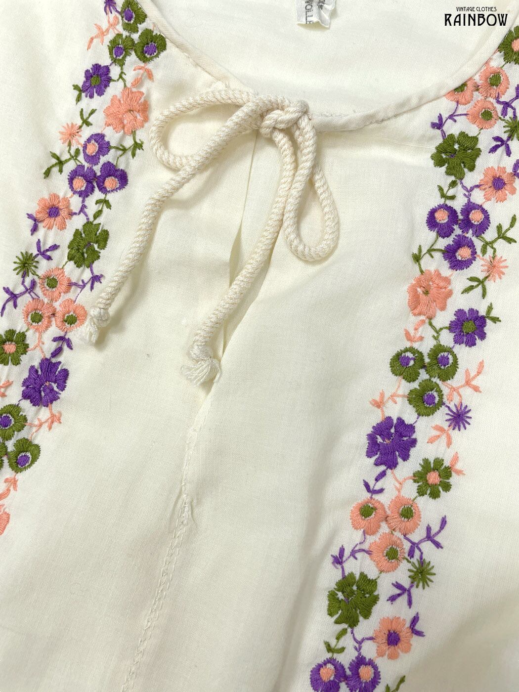 #ブラウス #bブラウス #ハーフスリーブ #黄 #花柄 #刺繍 #リボン #レース #ガーリー #コットン #刺繍シャツ