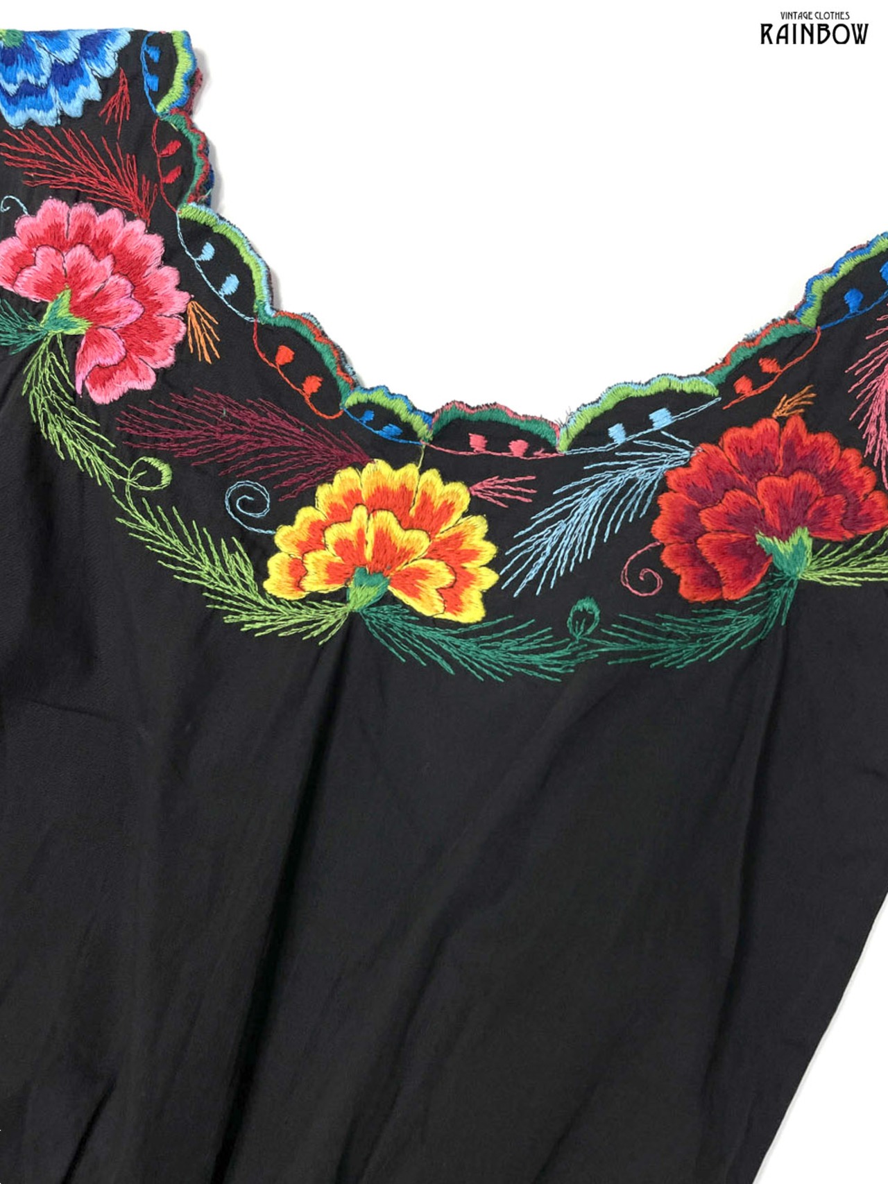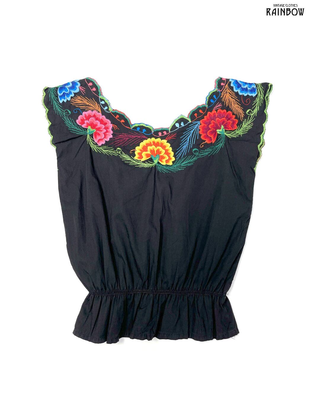 #ブラウス #bブラウス #ノースリーブ #黒 #花柄 #刺繍 #クラシック #ヴィンテージ #コットン #刺繍シャツ