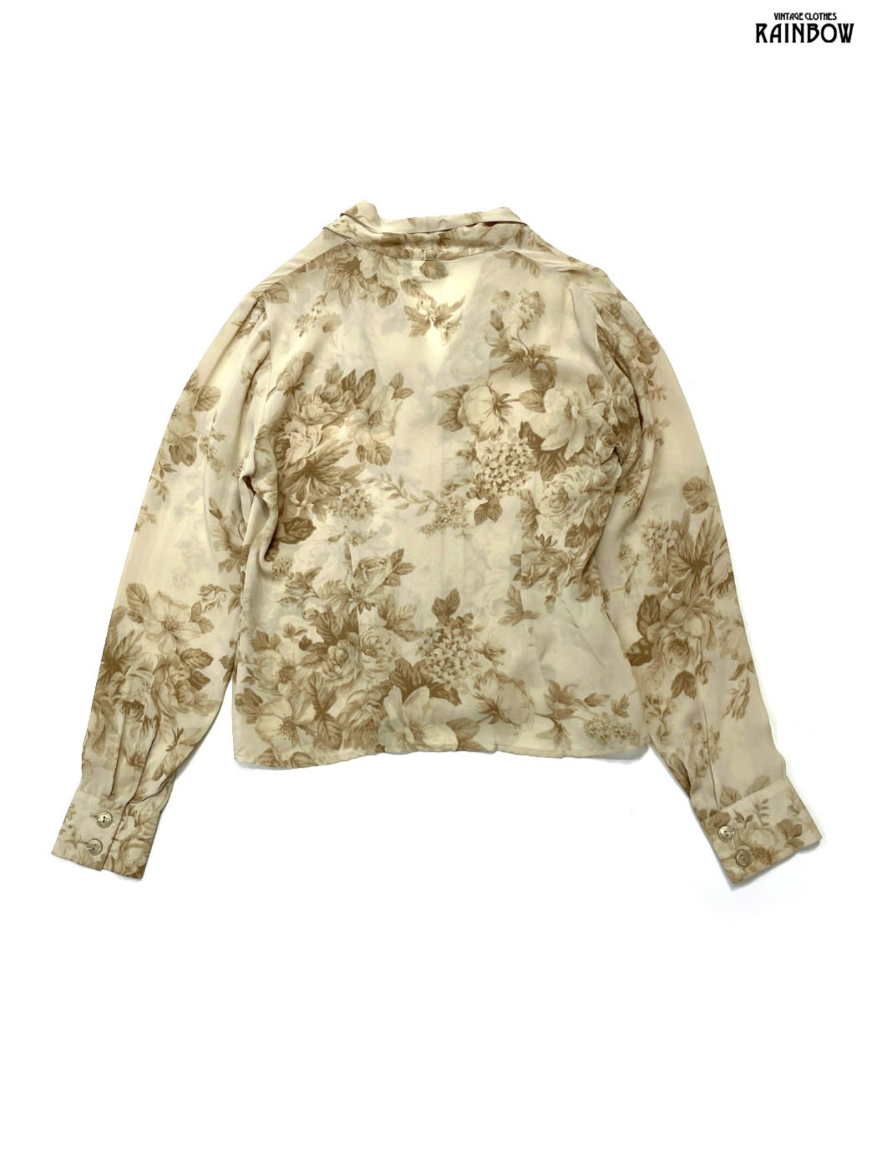 #ワンピース #セットアップ #ロングスリーブ #膝丈 #ベージュ #花柄 #アメリカ製 #シフォン #セットアップ