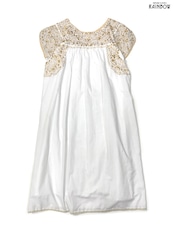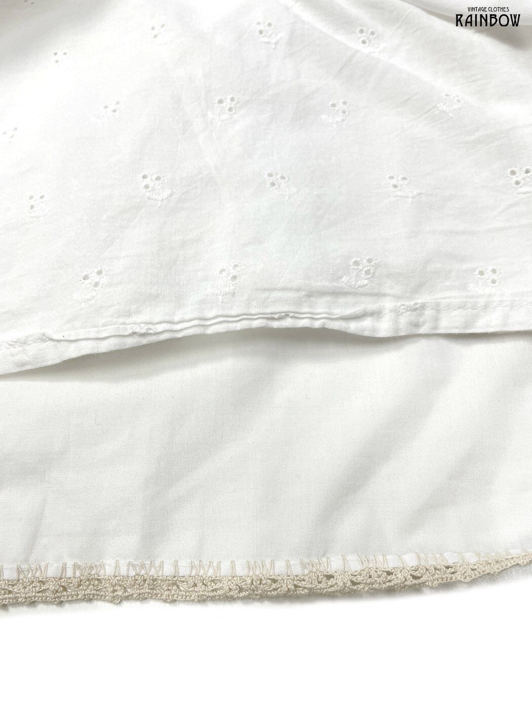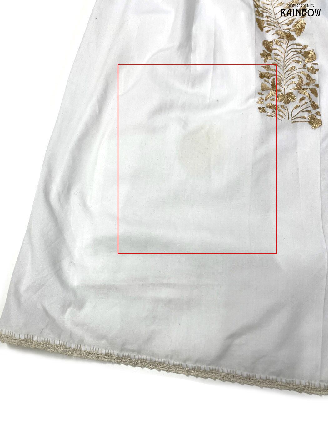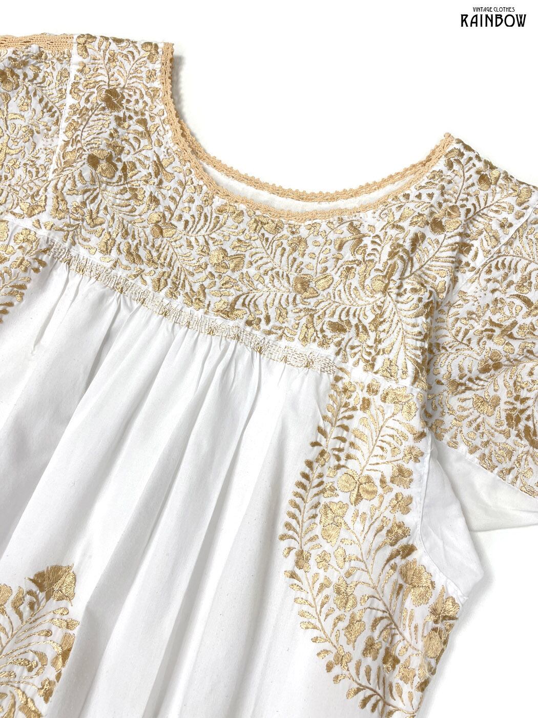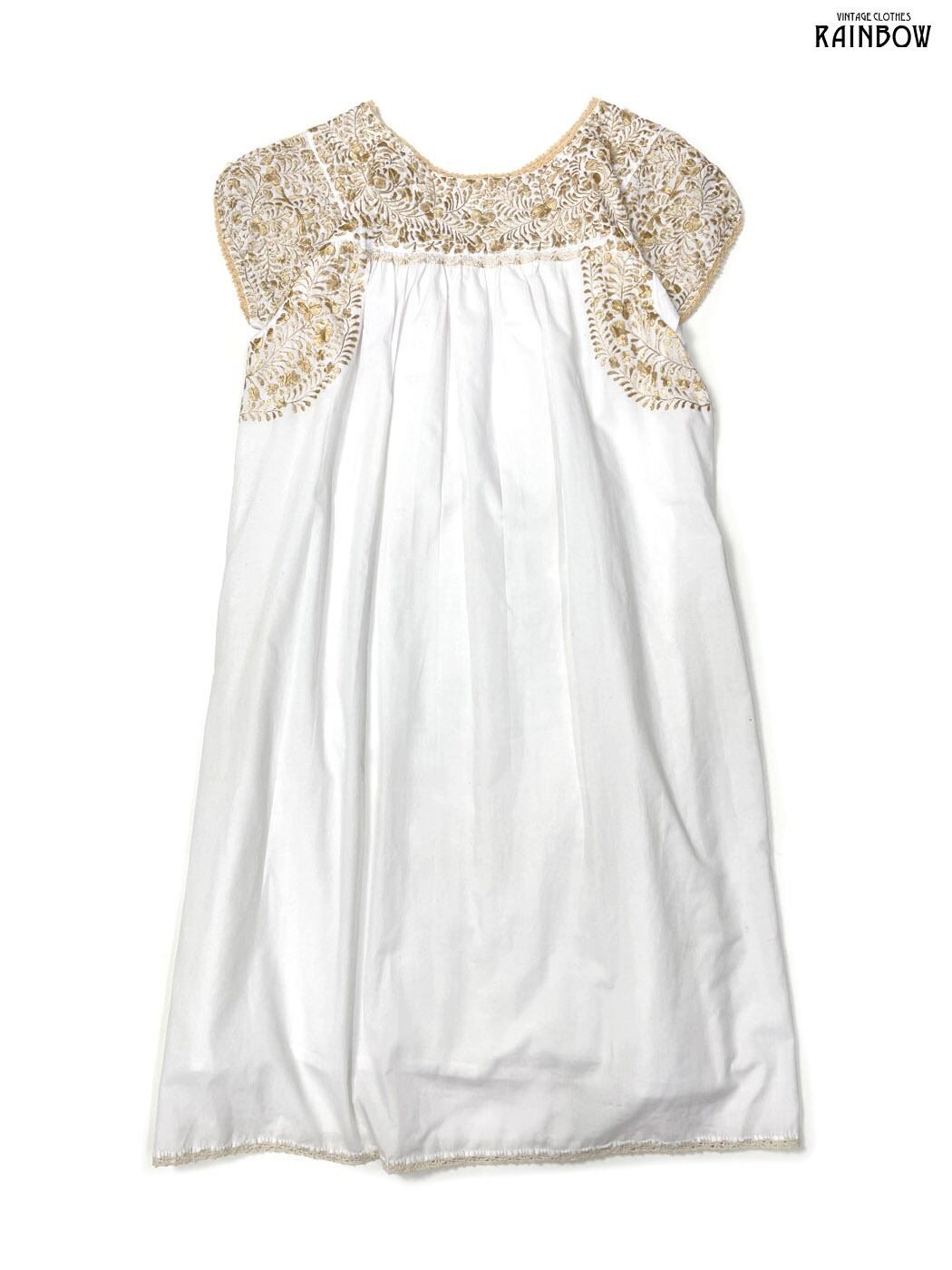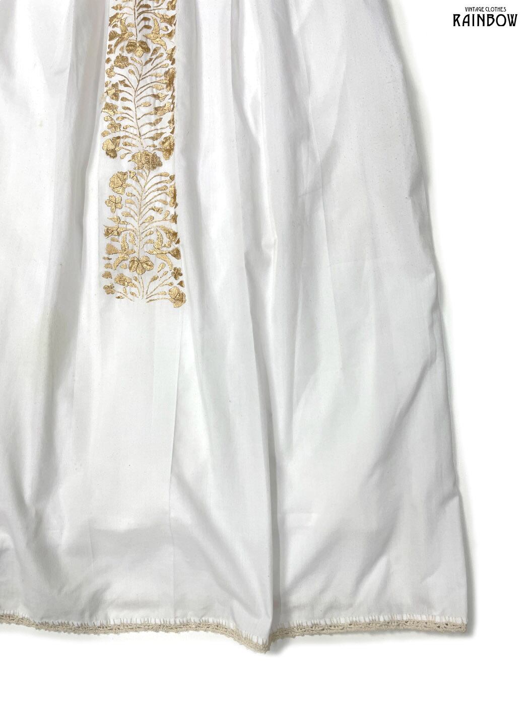 #ワンピース #ハーフスリーブ #ロング丈 #フレア #ストレート #バスト切り替え #白 #ゴールド #花柄 #刺繍 #ガーリー #ヴィンテージ #コットン #刺繍ワンピース