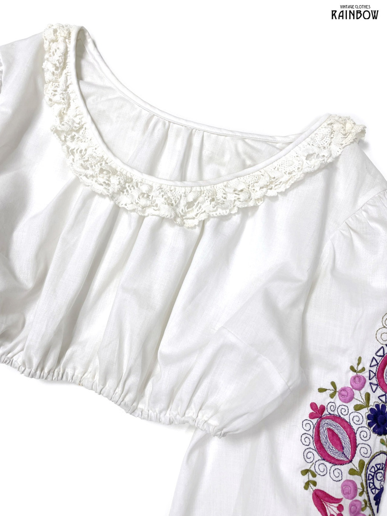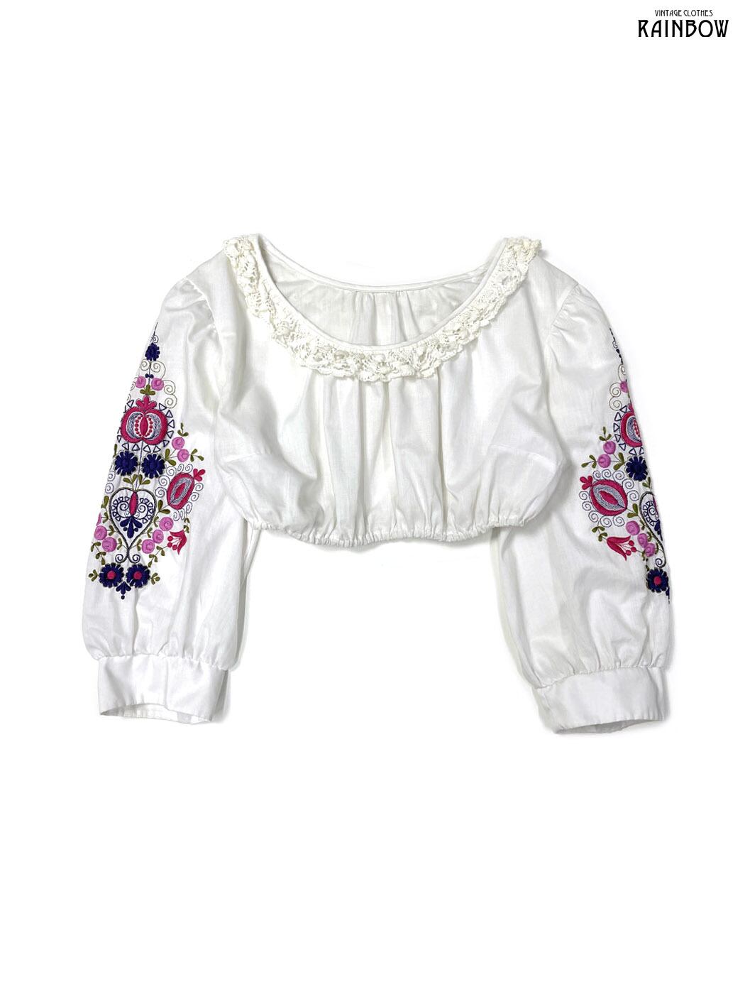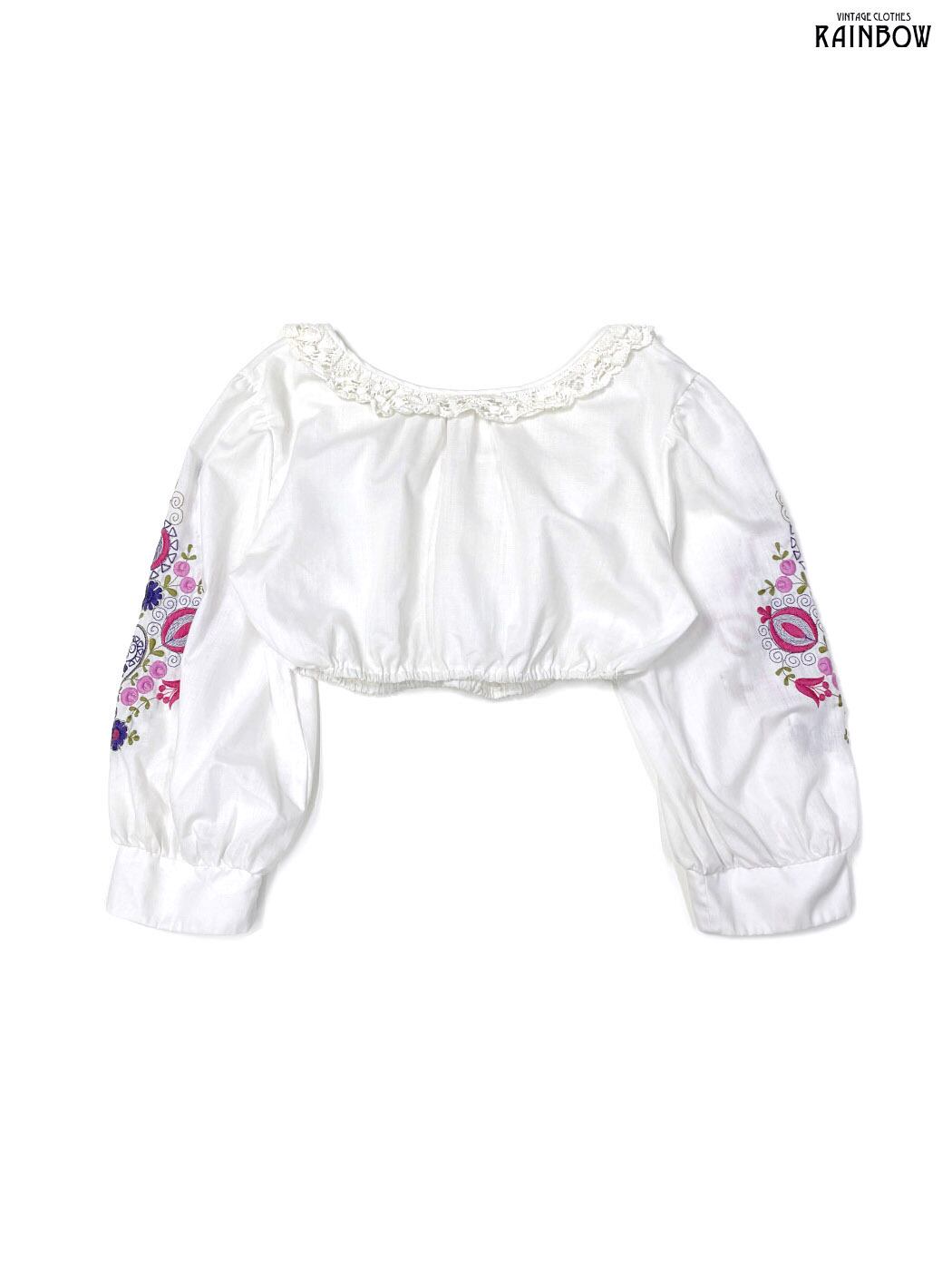 #ブラウス #bブラウス #ロングスリーブ #白 #花柄 #刺繍 #レース #ショート丈 #ガーリー #コットン #刺繍シャツ