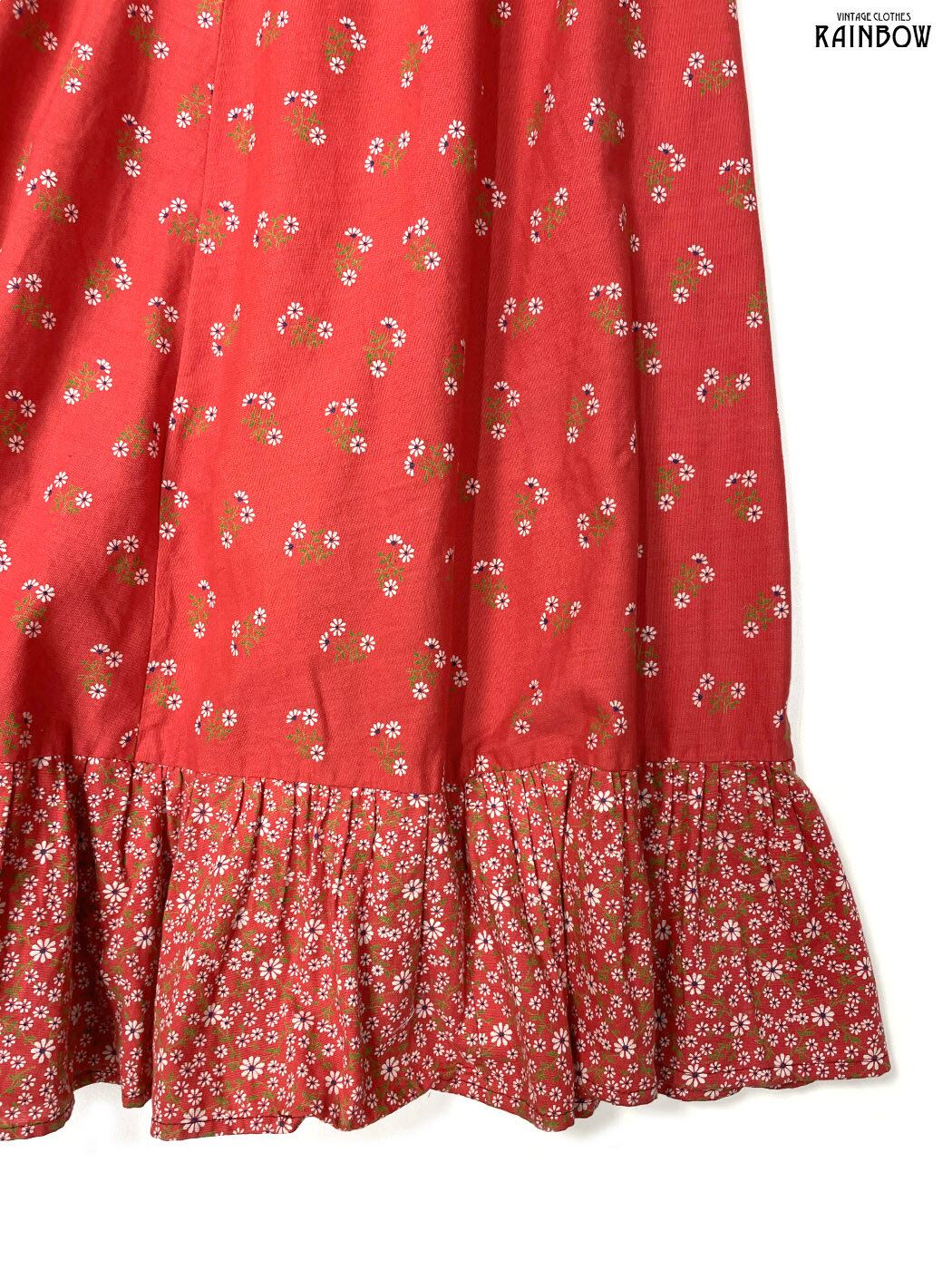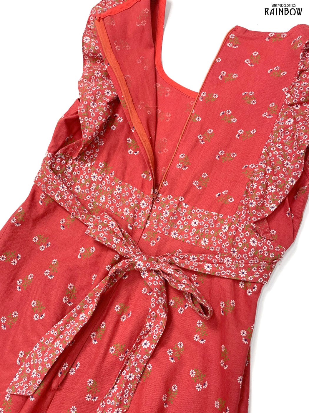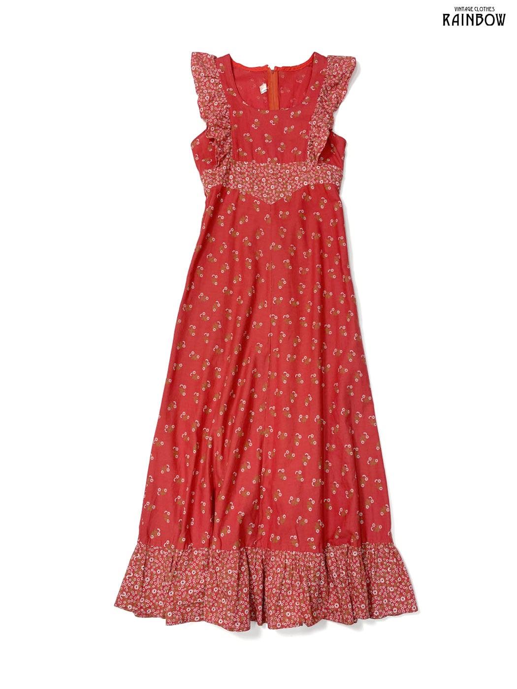 #ワンピース #ノースリーブ #ロング丈 #ティアード #バスト切り替え #赤 #花柄 #フリル #リボン #ガーリー #コットン #ノースリーブ花柄ワンピース