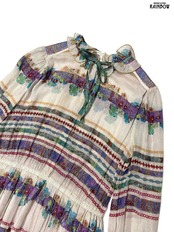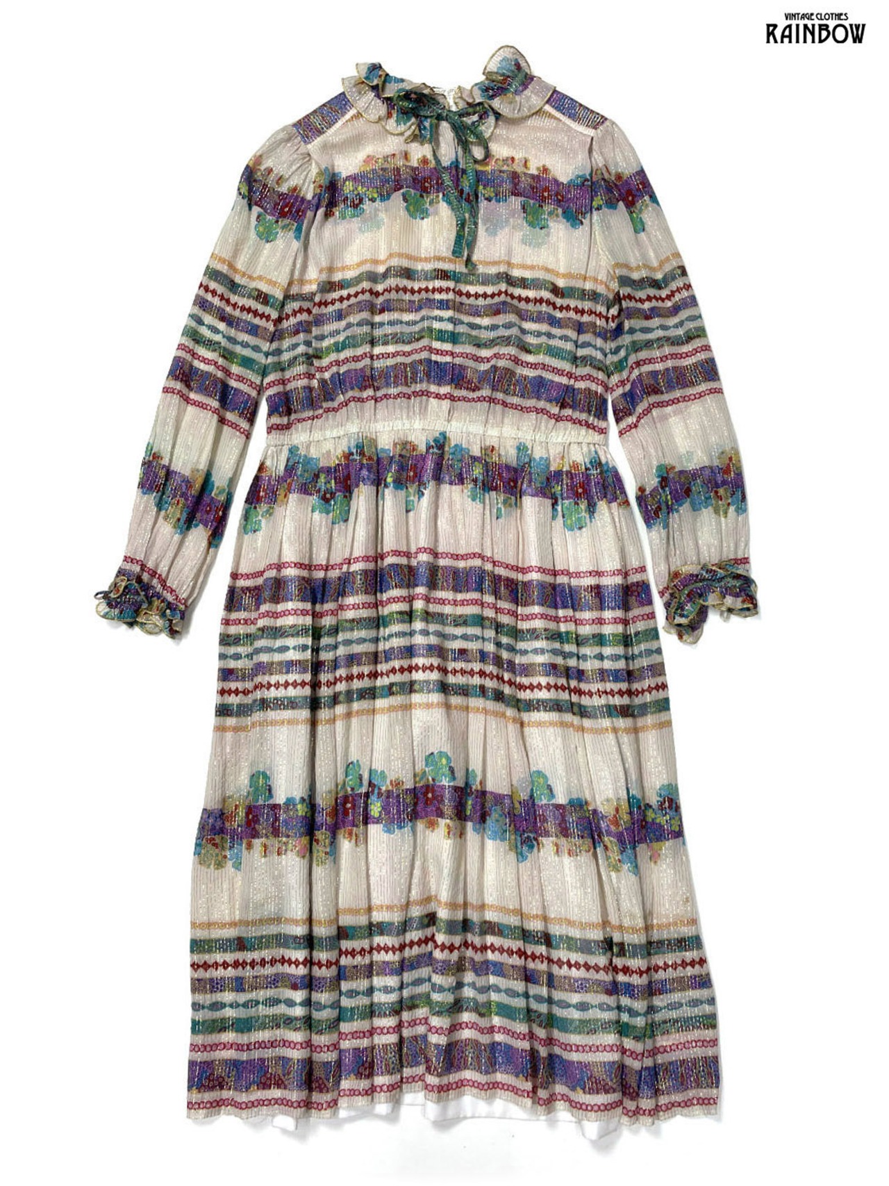 #ワンピース #ロングスリーブ #ロング丈 #ゴムウエスト #ベージュ #花柄 #総柄 ラメテープ #シフォン #長袖総柄ワンピース