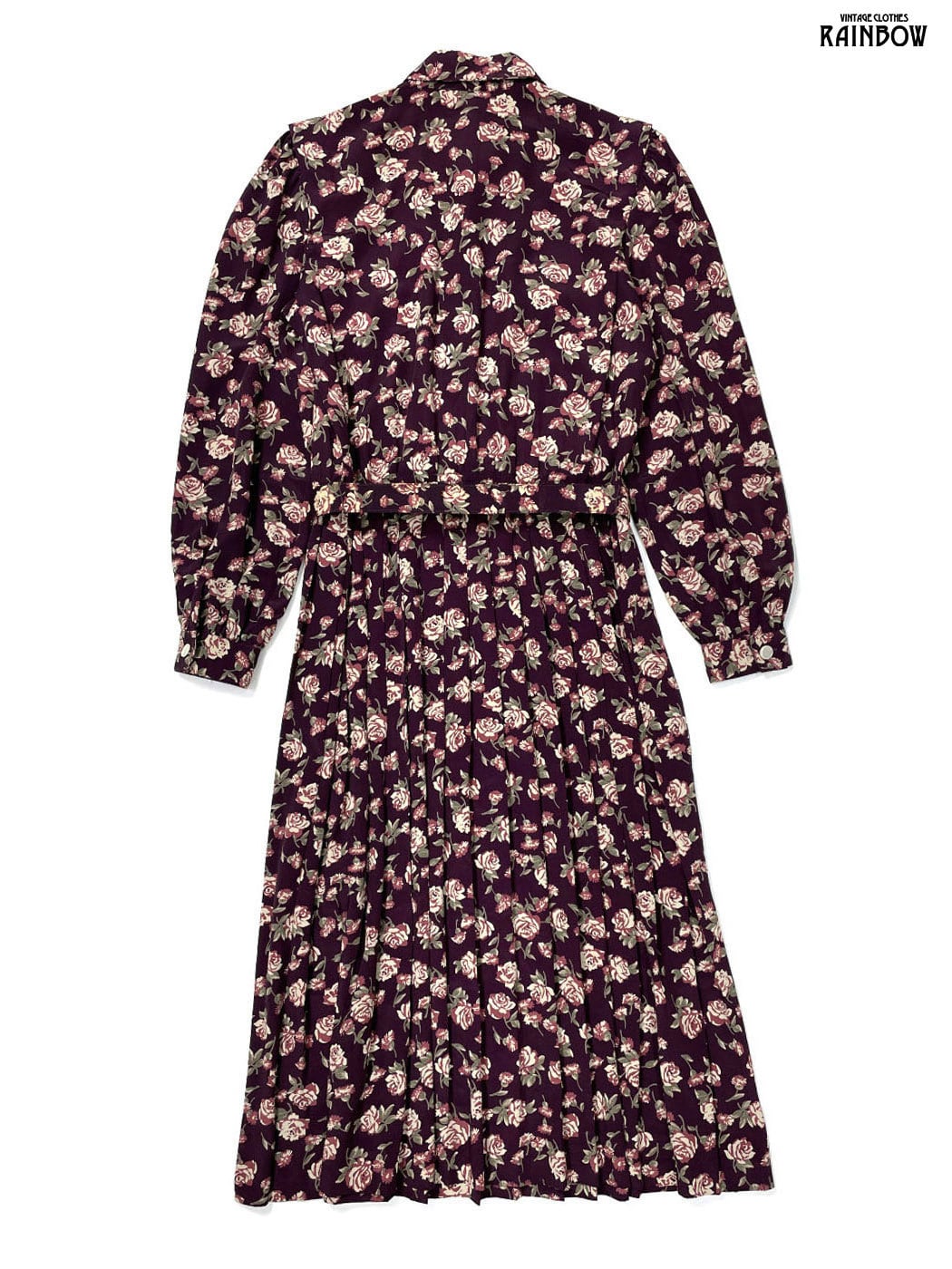 #ワンピース #ロングスリーブ #ロング丈 #ゴムウエスト #赤 #ボルドー #花柄 #ベルト付き #クラシック #長袖花柄ワンピース