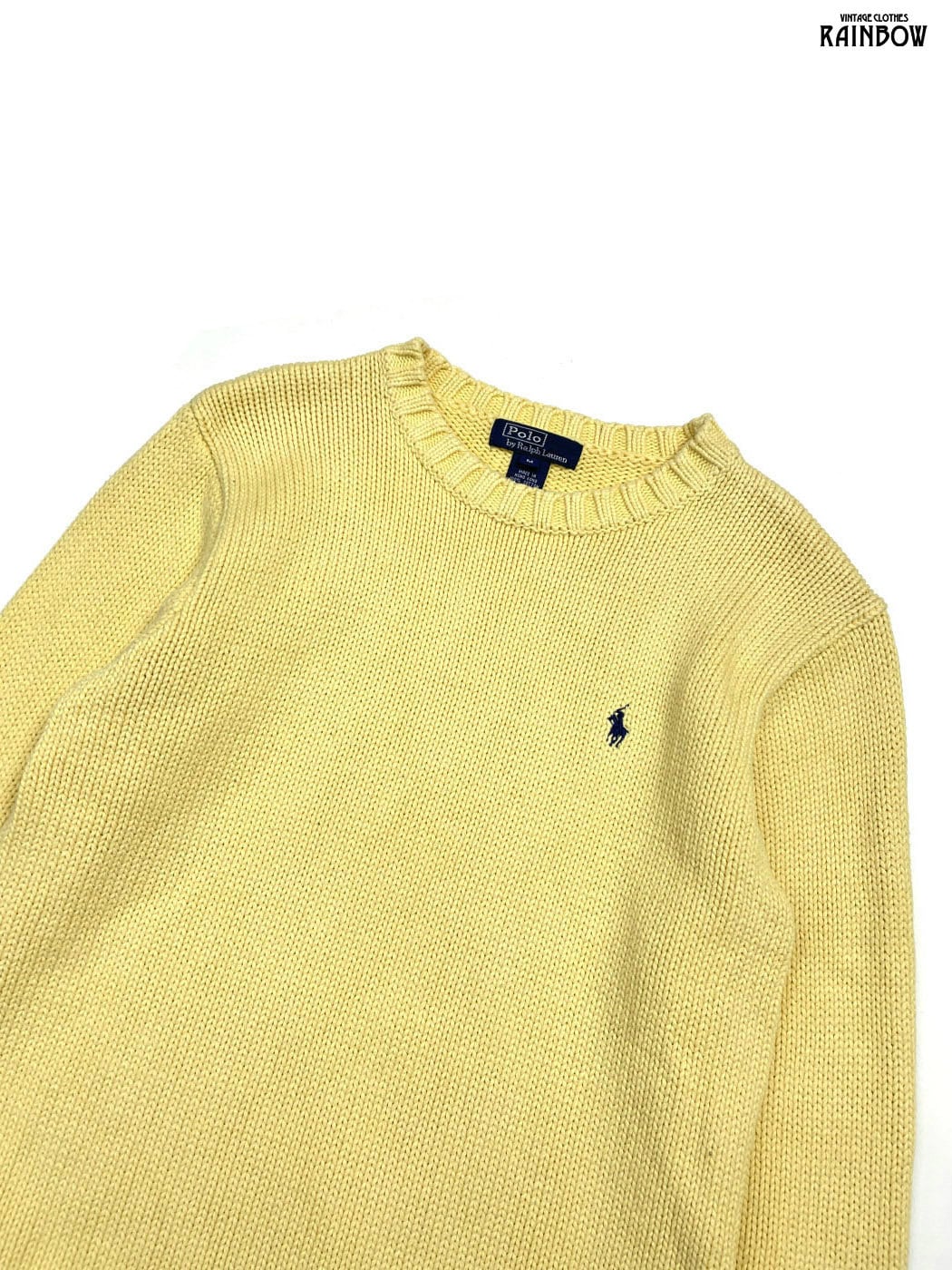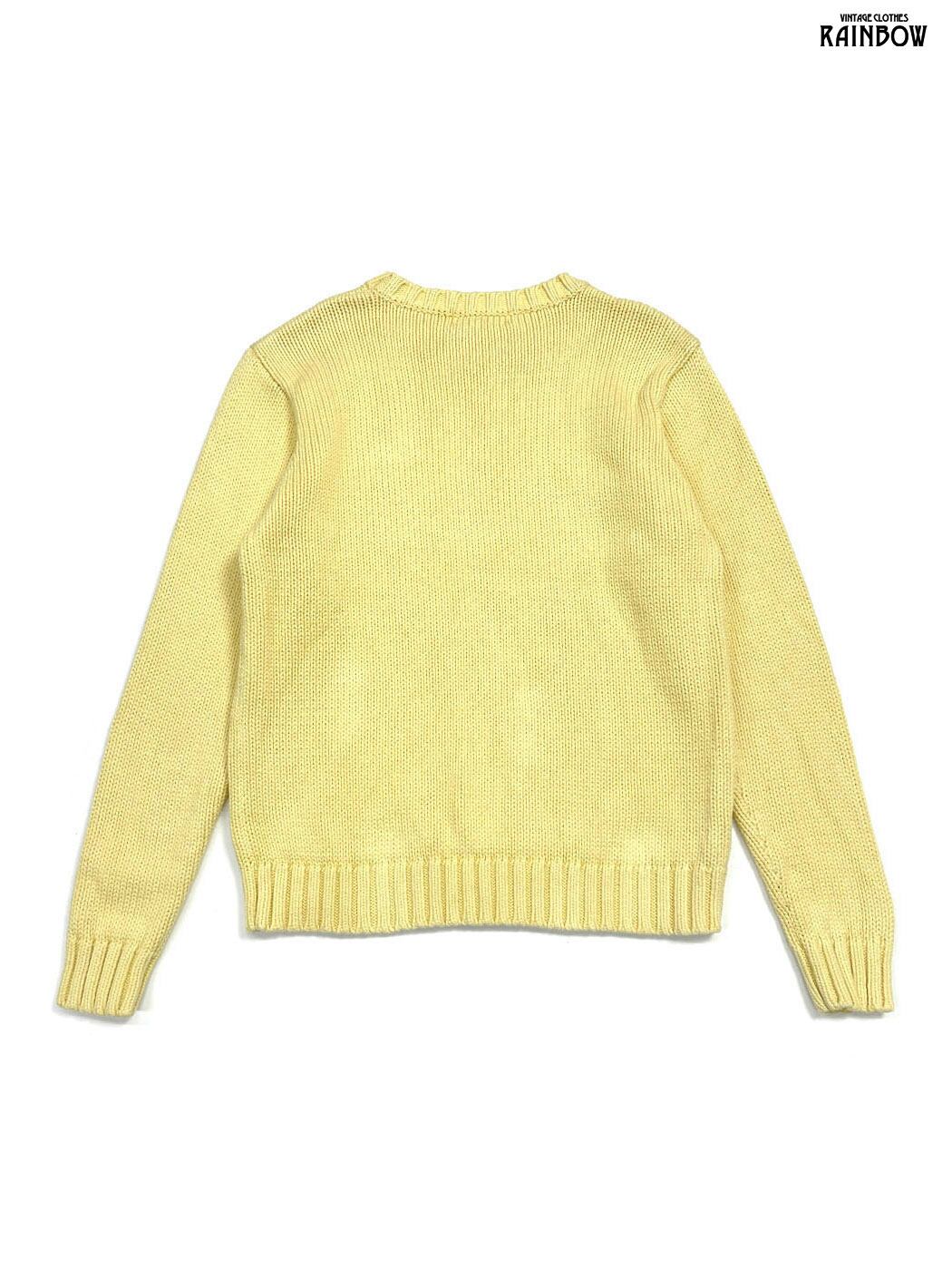 #ニット #セーター #ロングスリーブ #黄 #無地 #ワンポイント #刺繍 #シンプル #コットン #ニット地 #無地セーター