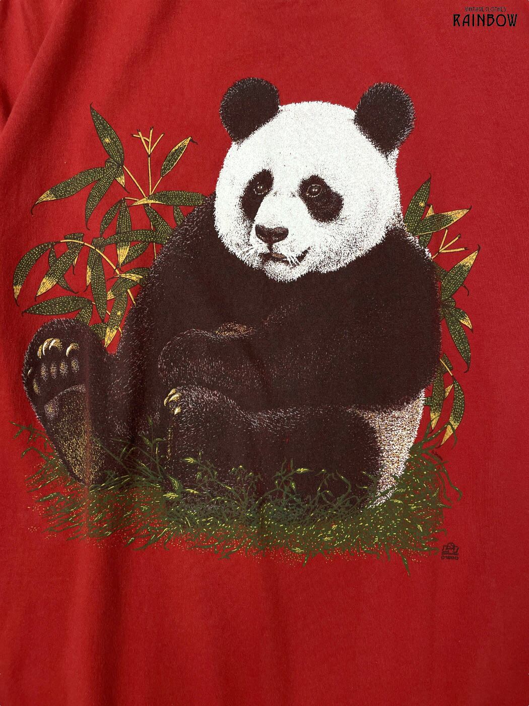 #トップス #Tシャツ #ハーフスリーブ #赤 #プリントデザイン #アニマル #パンダ #アメリカ製 #コットン #半袖プリントTシャツ