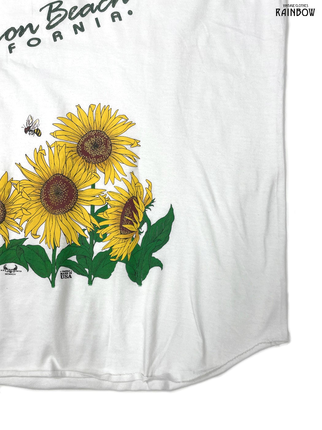#トップス #Tシャツ #ハーフスリーブ #ロング丈 #白 #プリントデザイン #ひまわり #アメリカ製 #コットン #半袖プリントTシャツ