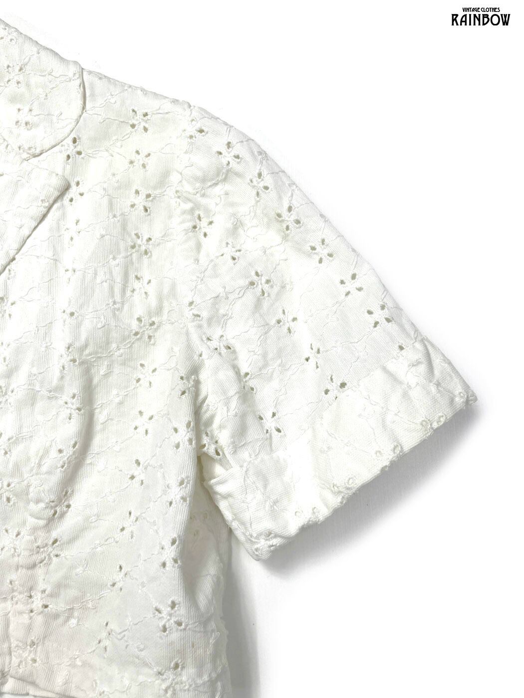 #ブラウス #bブラウス #ハーフスリーブ #白 #無地 #刺繍 #ヴィンテージ #総レース #レースシャツ