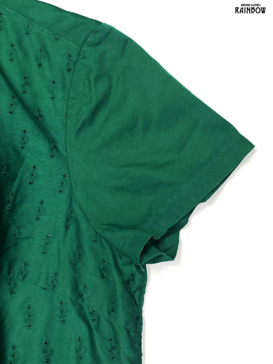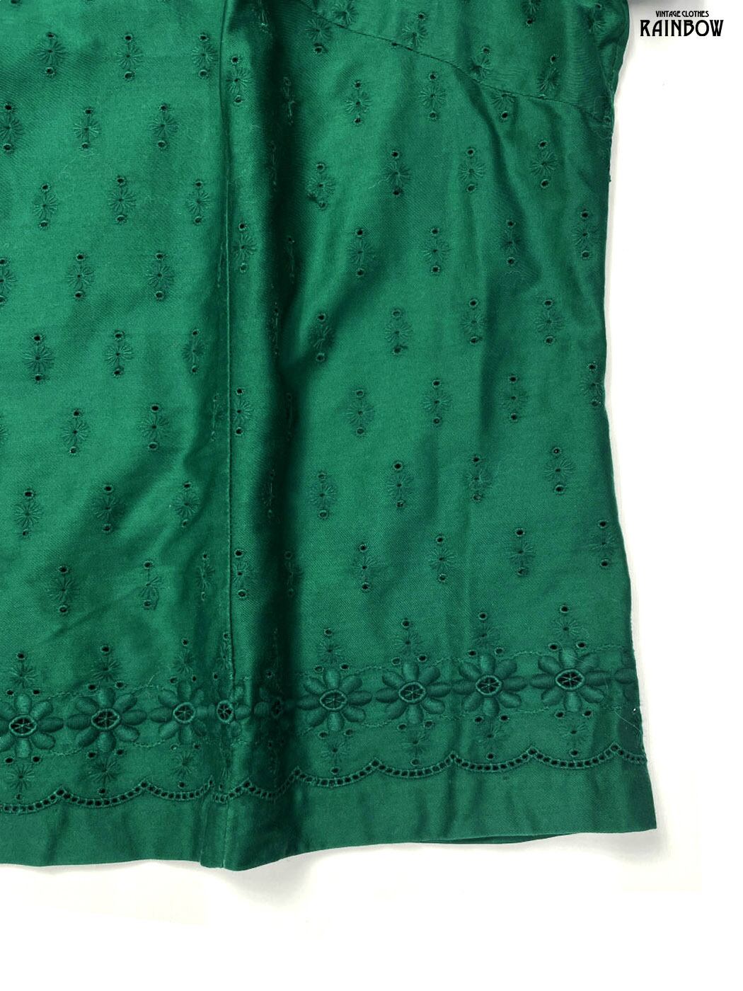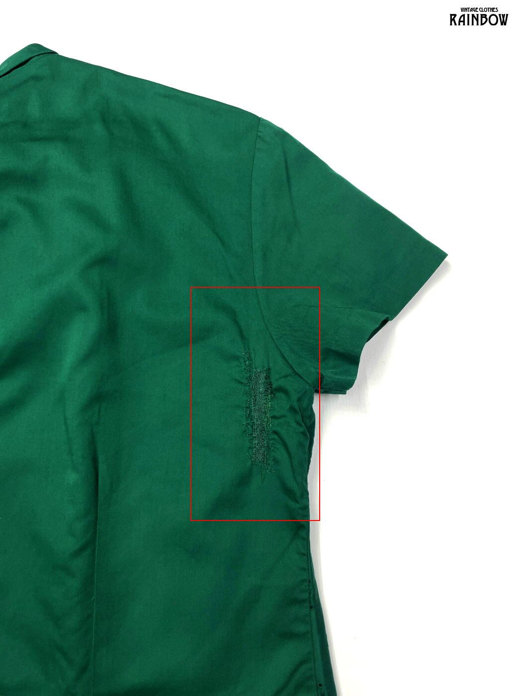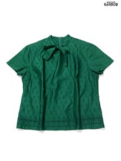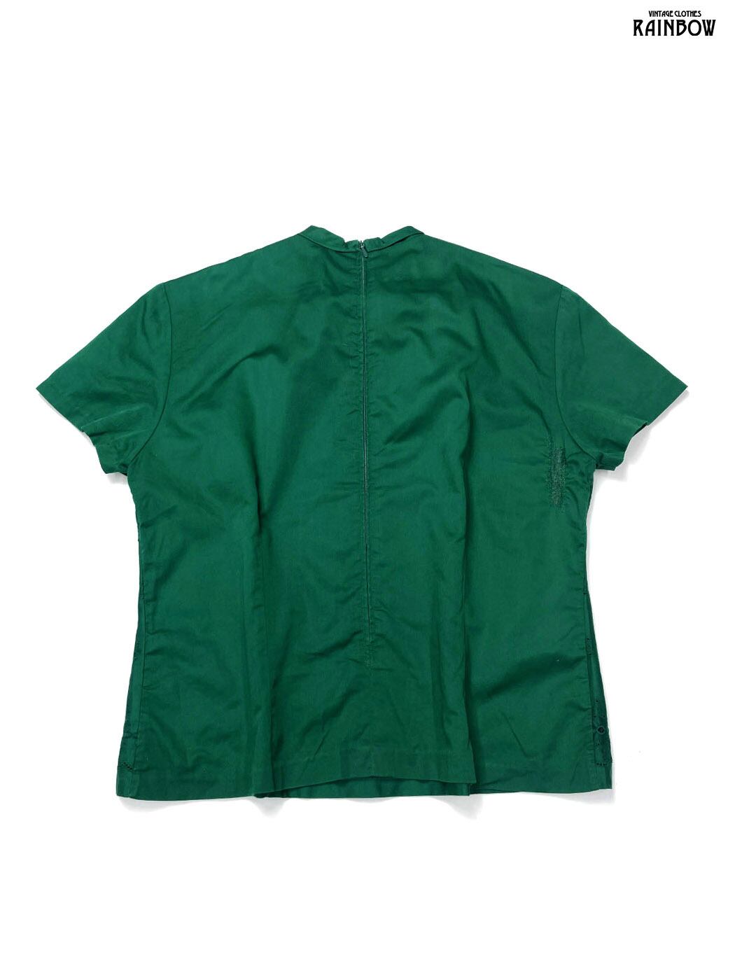 #ブラウス #bブラウス #ハーフスリーブ #緑 #無地 #刺繍 #リボン #ヴィンテージ #コットン #半袖刺繍シャツ