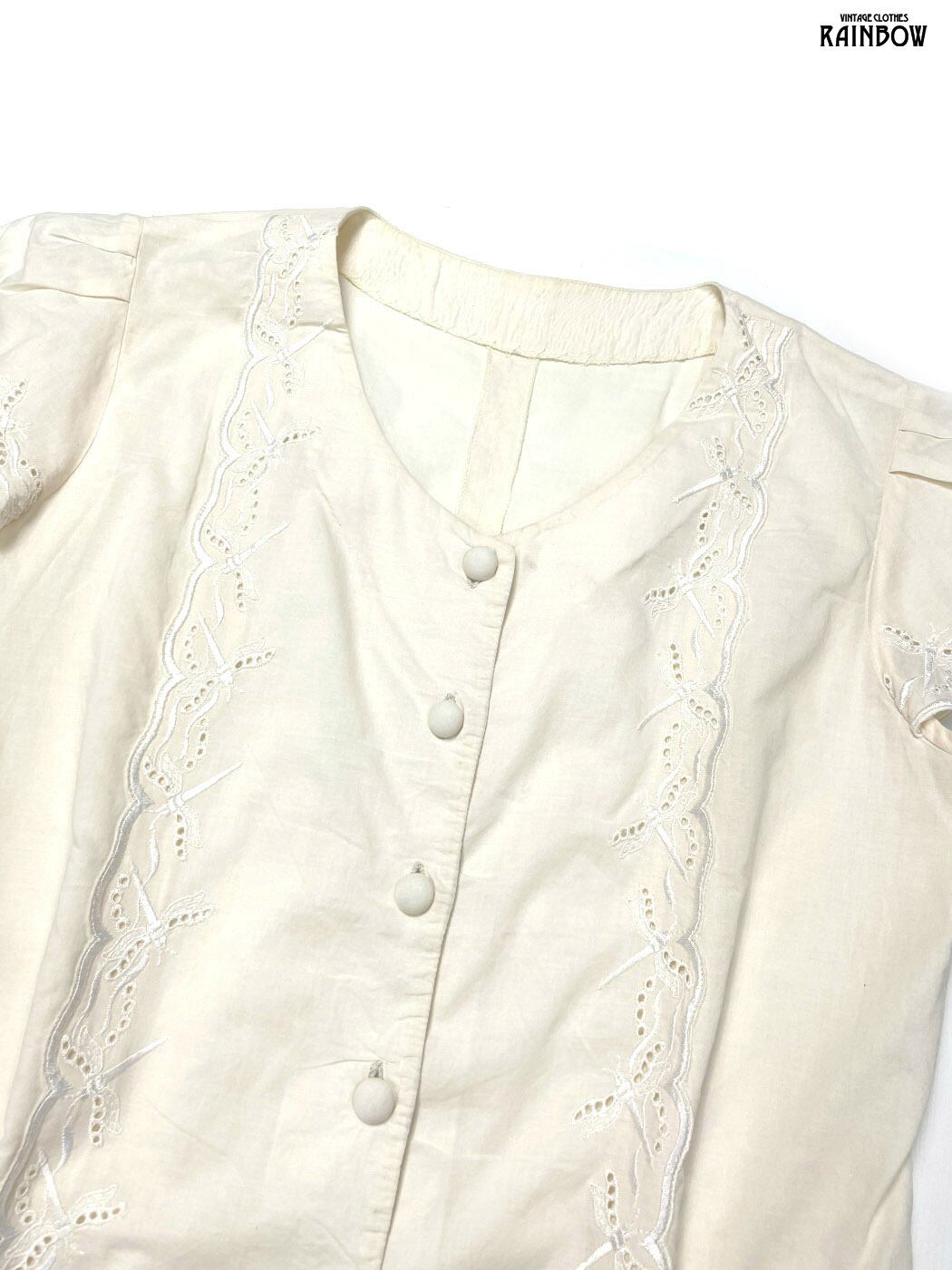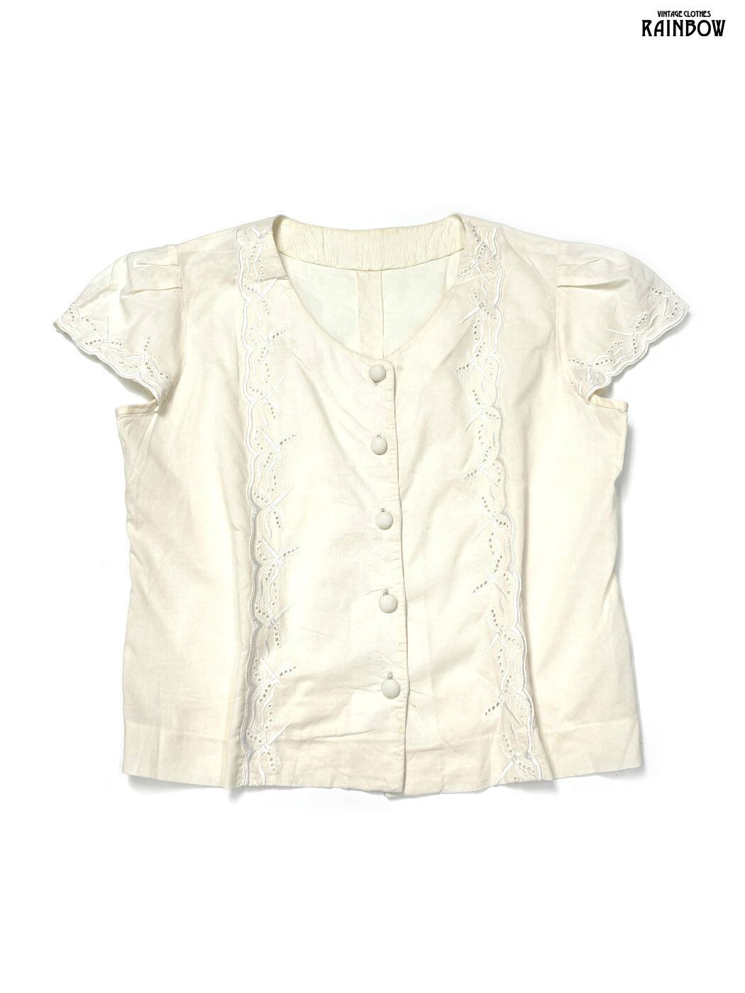 #ブラウス #bブラウス #ハーフスリーブ #ベージュ #刺繍 #ヴィンテージ #レーヨン #半袖刺繍シャツ