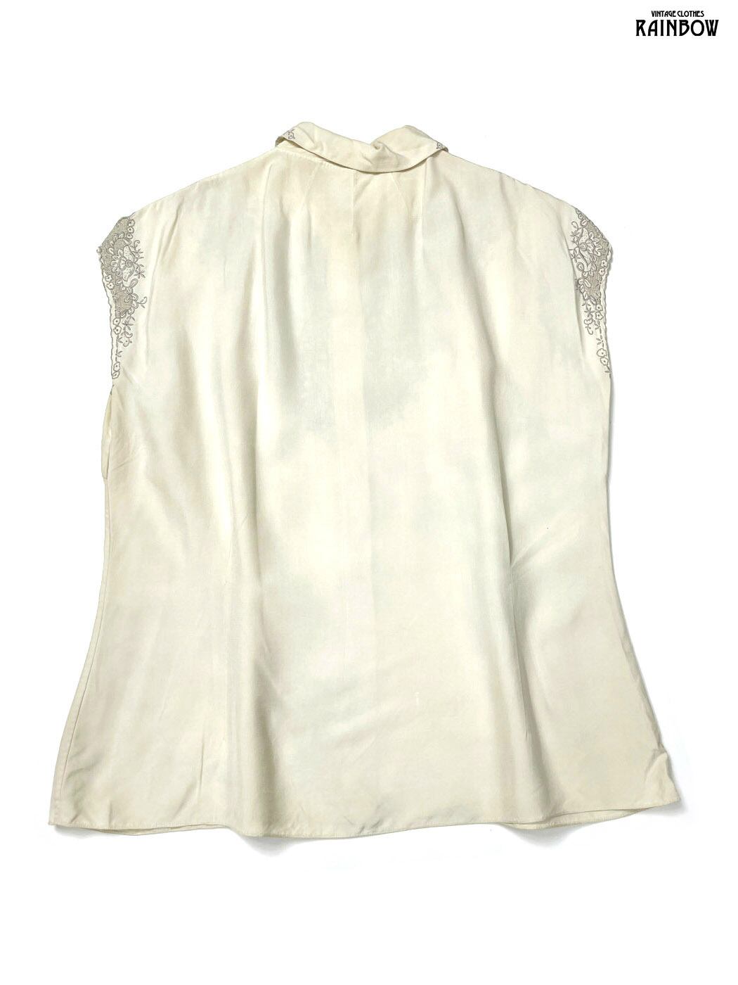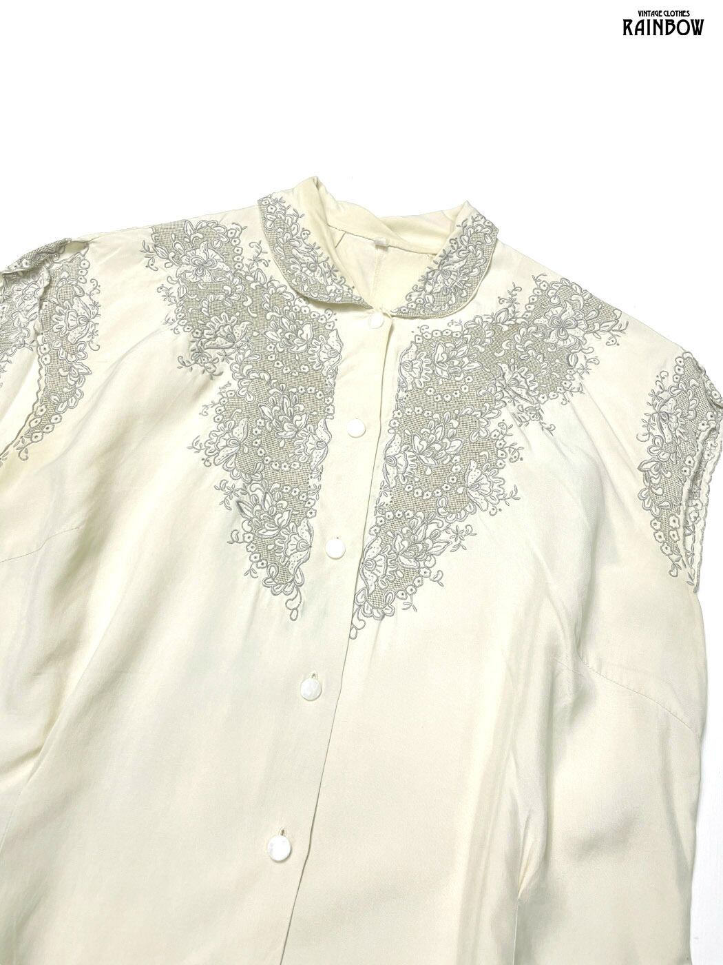 #ブラウス #bブラウス #ハーフスリーブ #ベージュ #刺繍 #ヴィンテージ #レーヨン #半袖刺繍シャツ